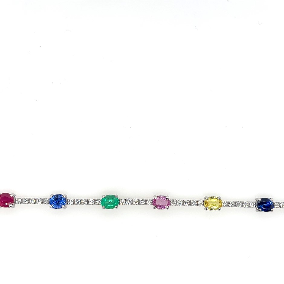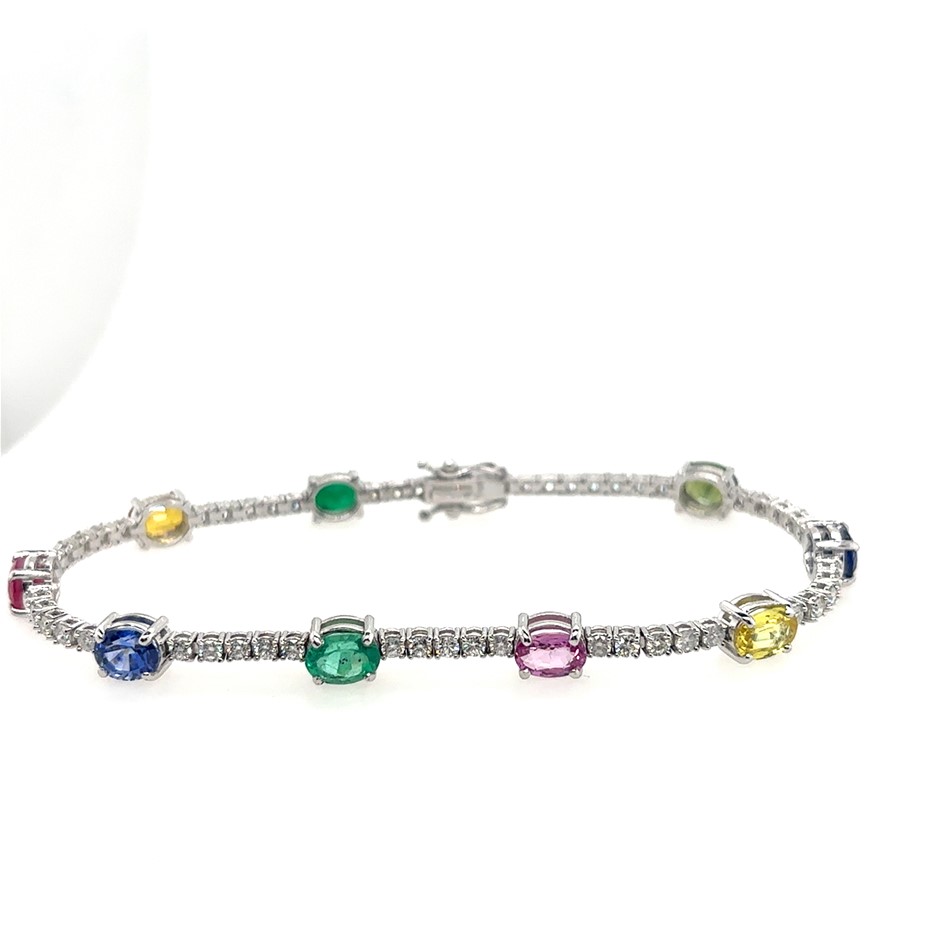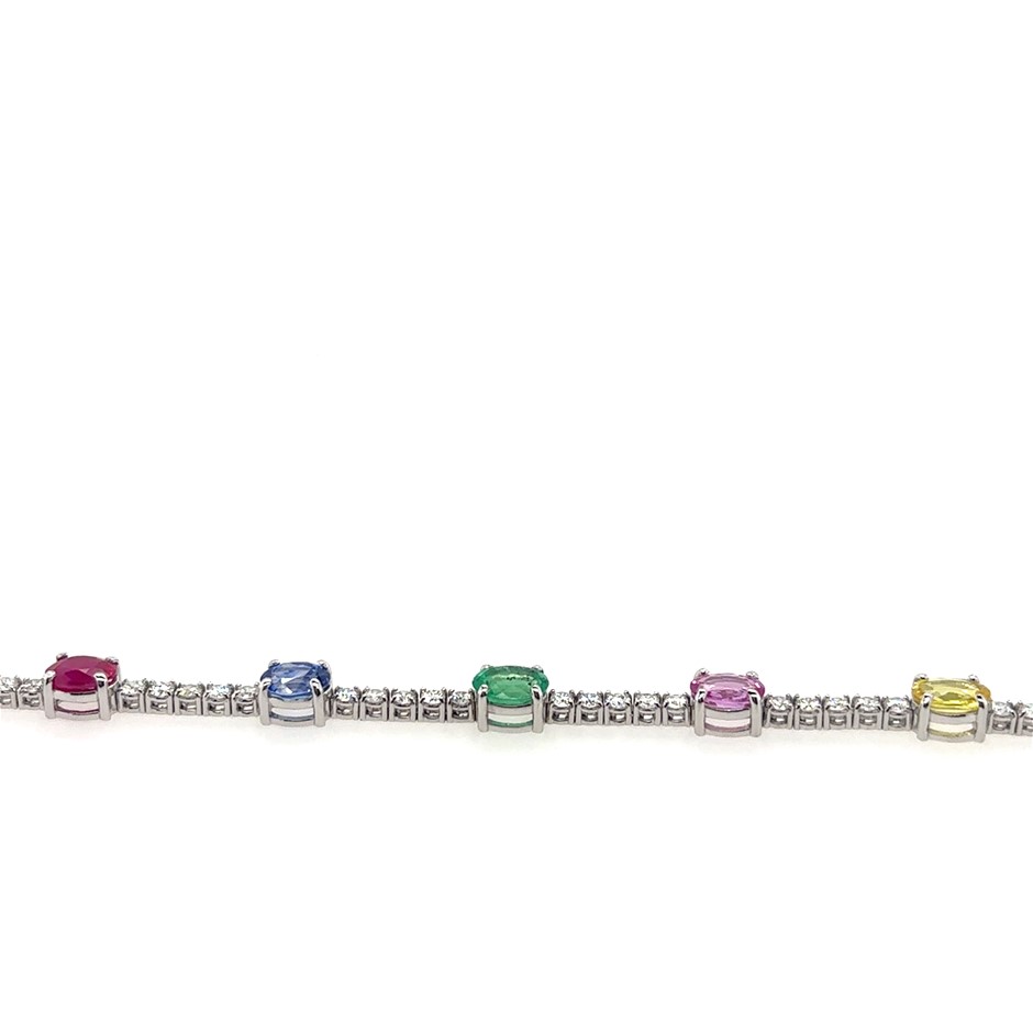 7.15ct multi stone Varying in colour & Dia. 1.90ct Fifty Three Stones Round G/SI Tennis Bracelet 18K White Gold