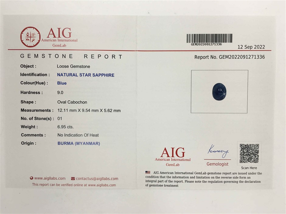 6.95ct One Stone Loose Natural Star Blue Sapphire unheat Oval Cabochon With AIG Cert.