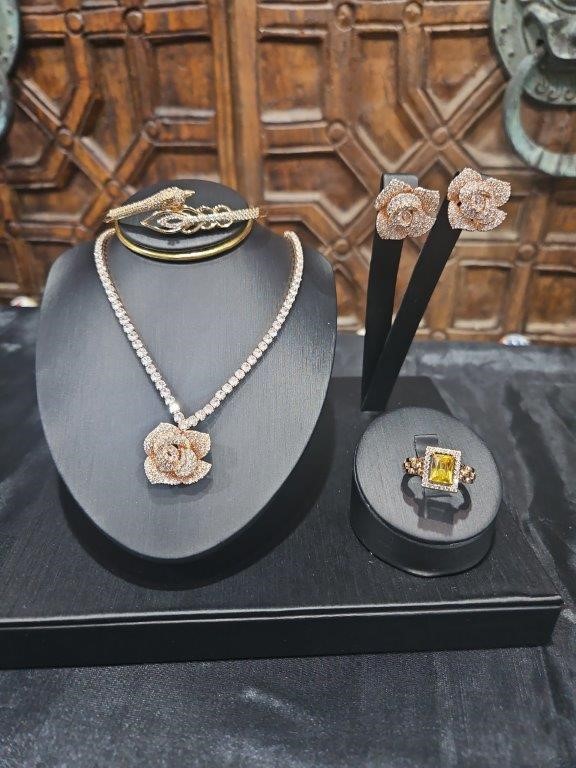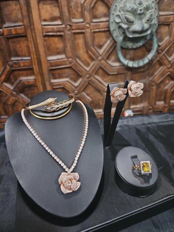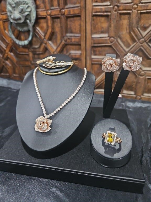 5pcs x 18K Stamped Rose Gold Filled Bangle, Ring, Earring, Necklace & Watch
