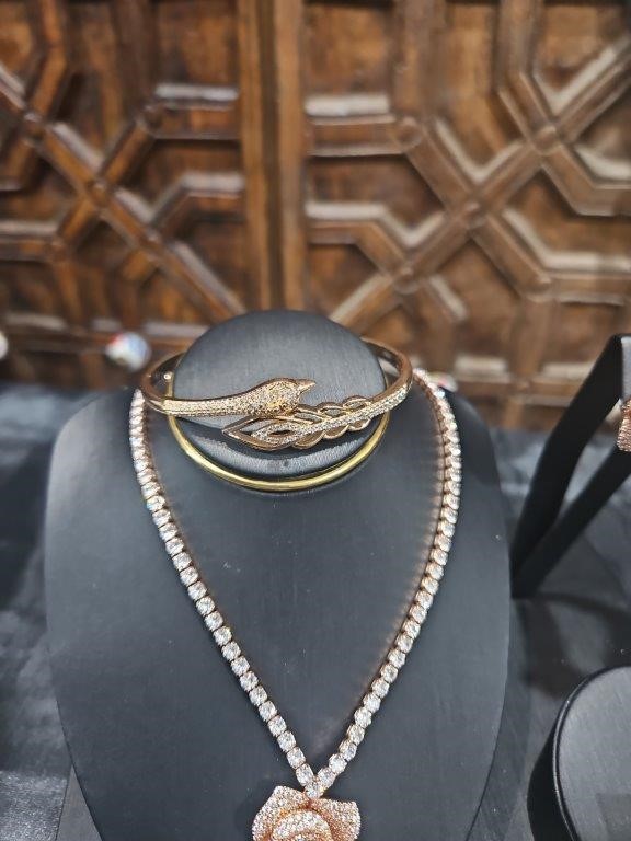 • Set Purple Simulated Diamonds Stones Tennis Necklace & Earrings & Ring (18kstamps) and one Bangle in PT950 stamps & One Watch fo women(orginal Box )