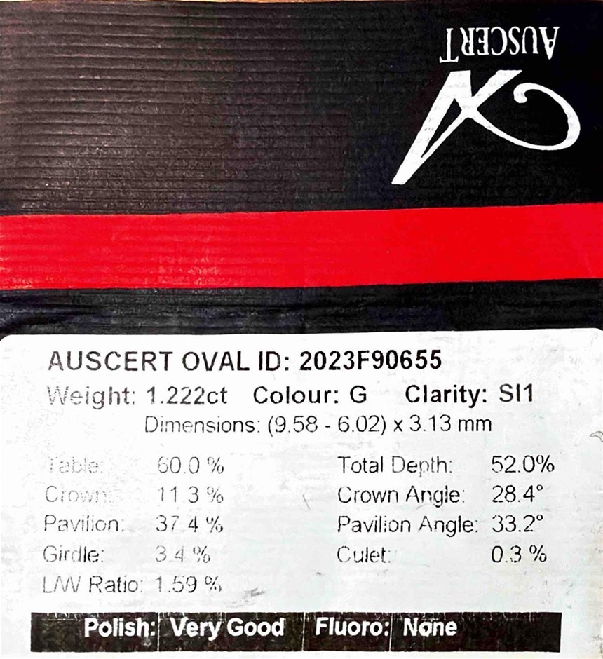 1.222ct One Stone NATURAL Dia. Oval G/SI1 With Auscert Cert.