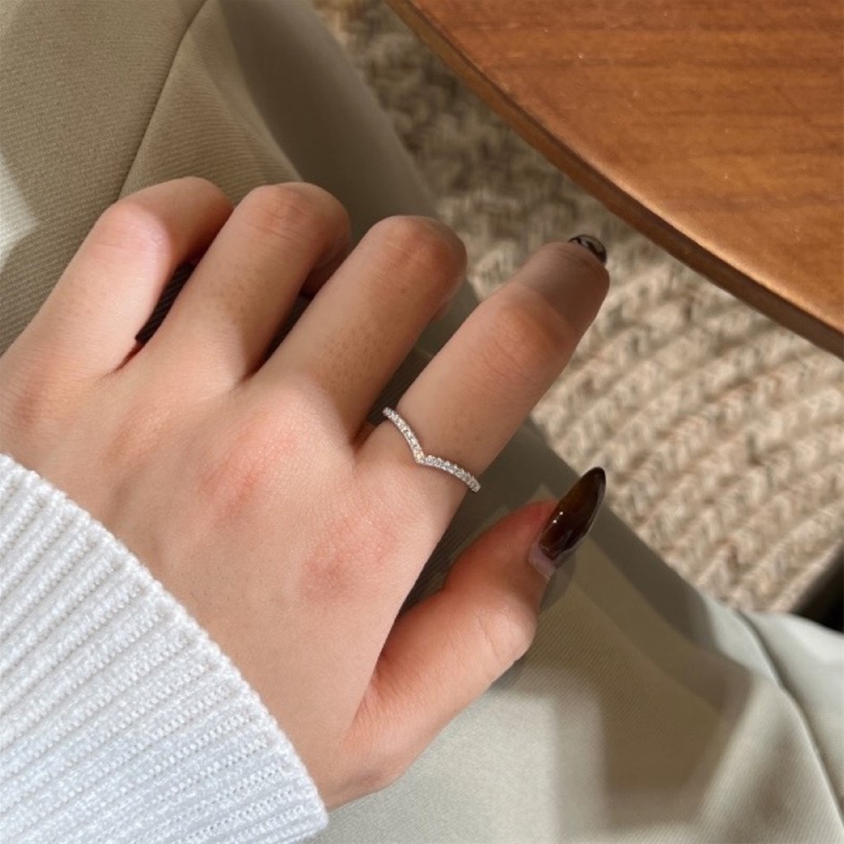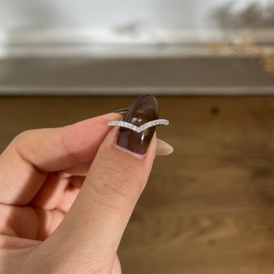 0.19ct GRA Certified Moissanite 925 Silver Band Ring - Size 8