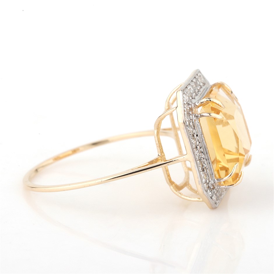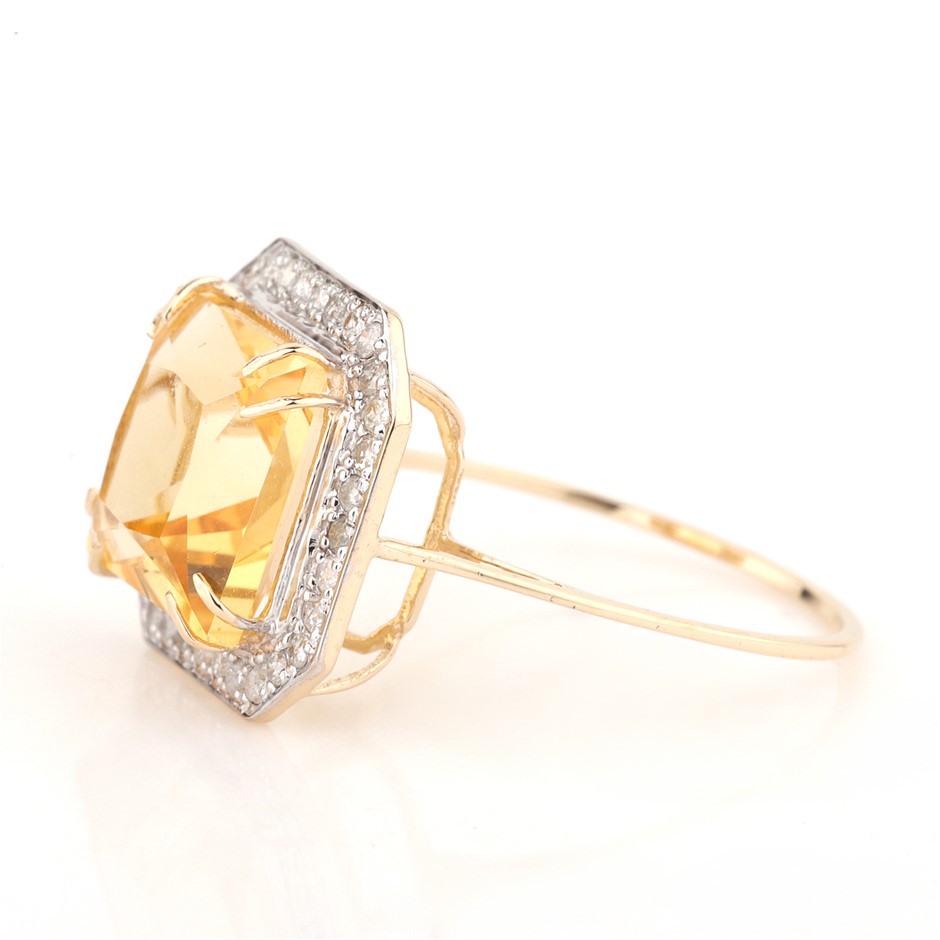 Yellow Gold Natural Citrine & Diamond Ring with Valuation