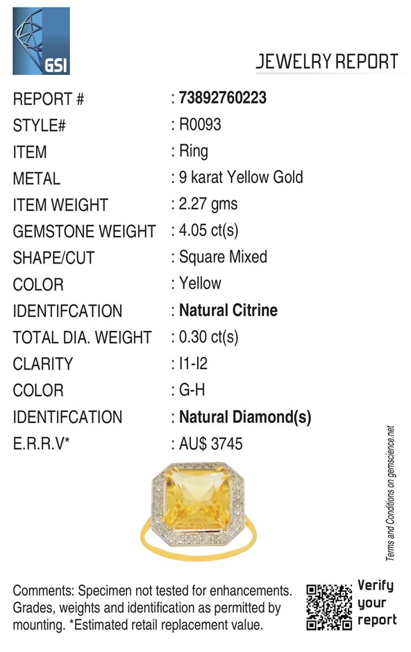 • Accompanied By Gemmologist Report Issued By Gemological Science International (Gsi).Total Valuation:$3748
