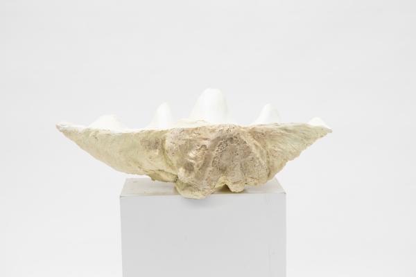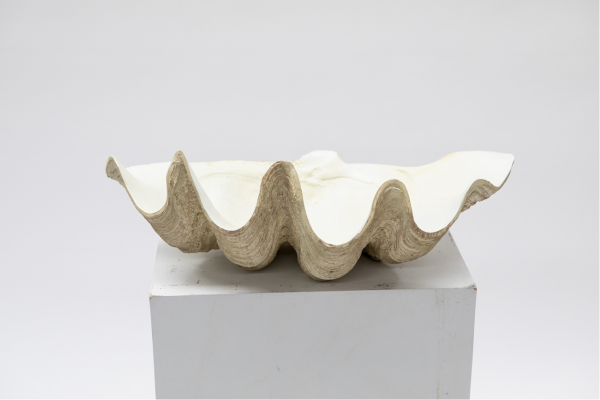 Cream Resin Clamshell Bowl 52cm Wide.