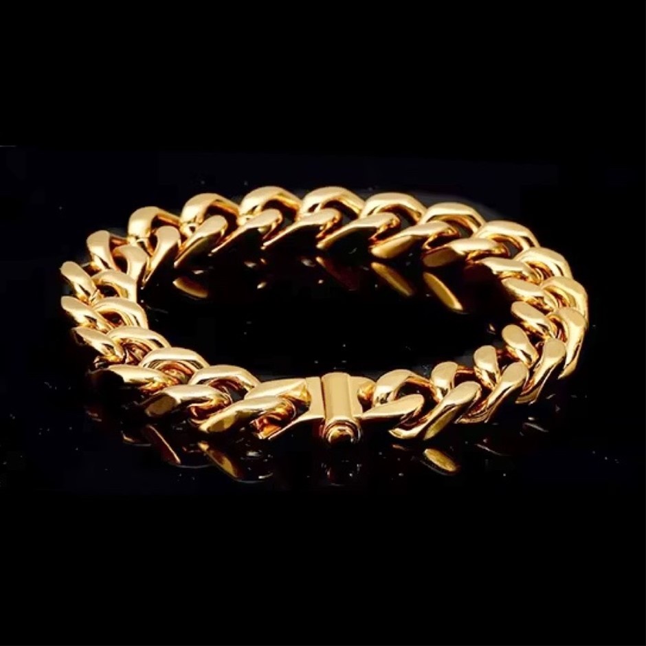 Opulent Galleria - 18K Gold-Filled Cuban Chain Bracelet, 10MM Wide - 21.5cm
