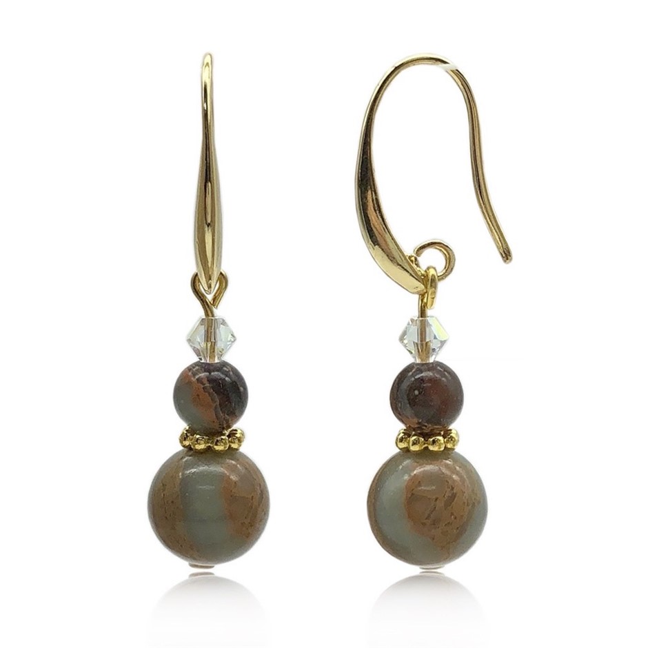 Exquisite Natural Round Aqua Terra Jasper Gemstones Adorned with Swarovski® Crystal Beads Earrings.