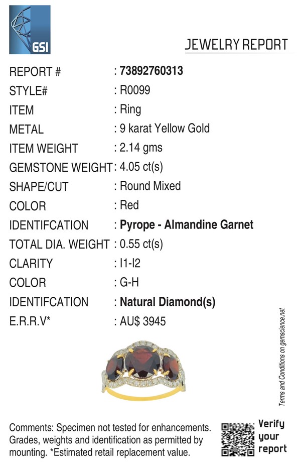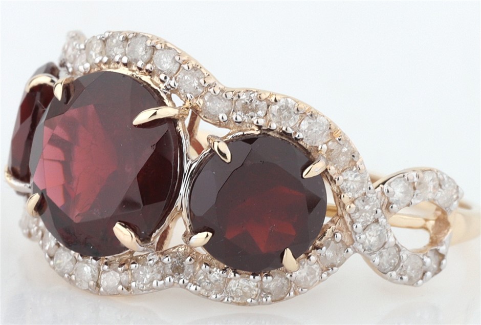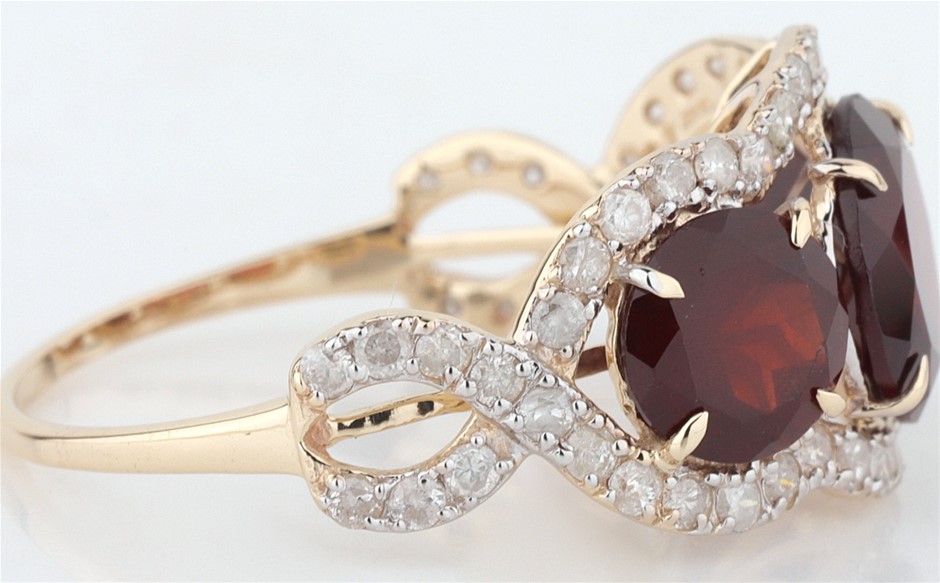 Yellow Gold Natural Garnet & Diamond Ring With Valuation