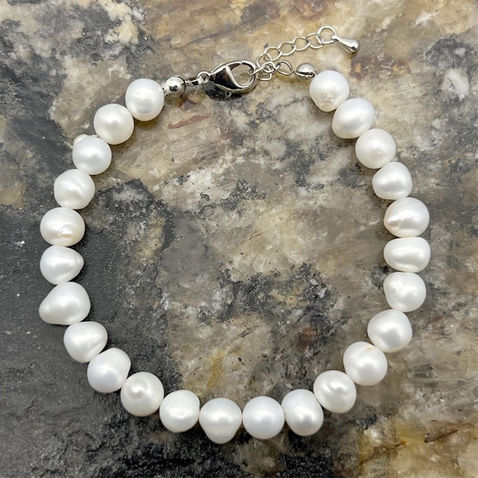 Natural 7-8mm Grade AB White Mix Shape Freshwater Pearl with Real Platinum Plated Bracelet.