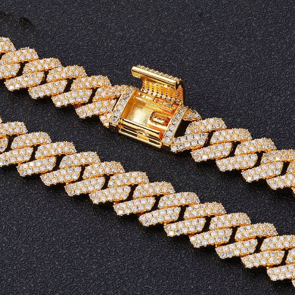 Opulent Galleria - 18K Gold-Filled Cuban Chain Necklace with Simulated Diamonds, 14MM Wide – 55.8cm