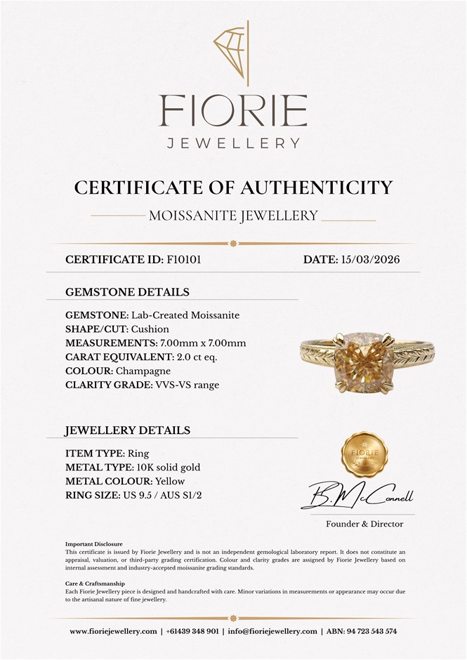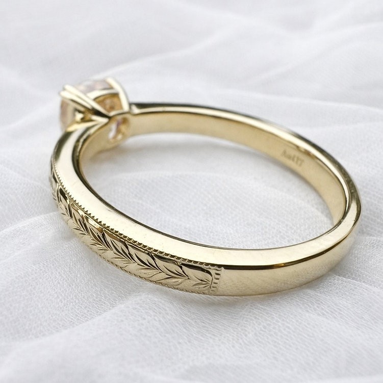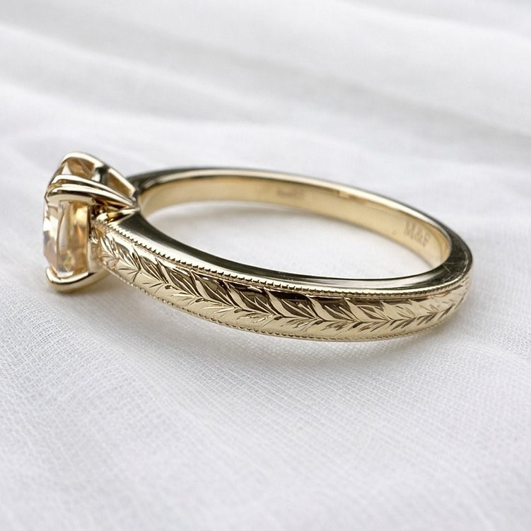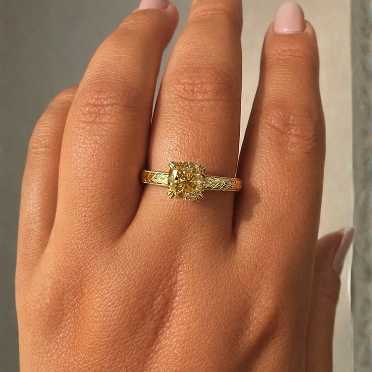 2ct Champagne Moissanite Engraved Textured Ring 10K Solid Gold
