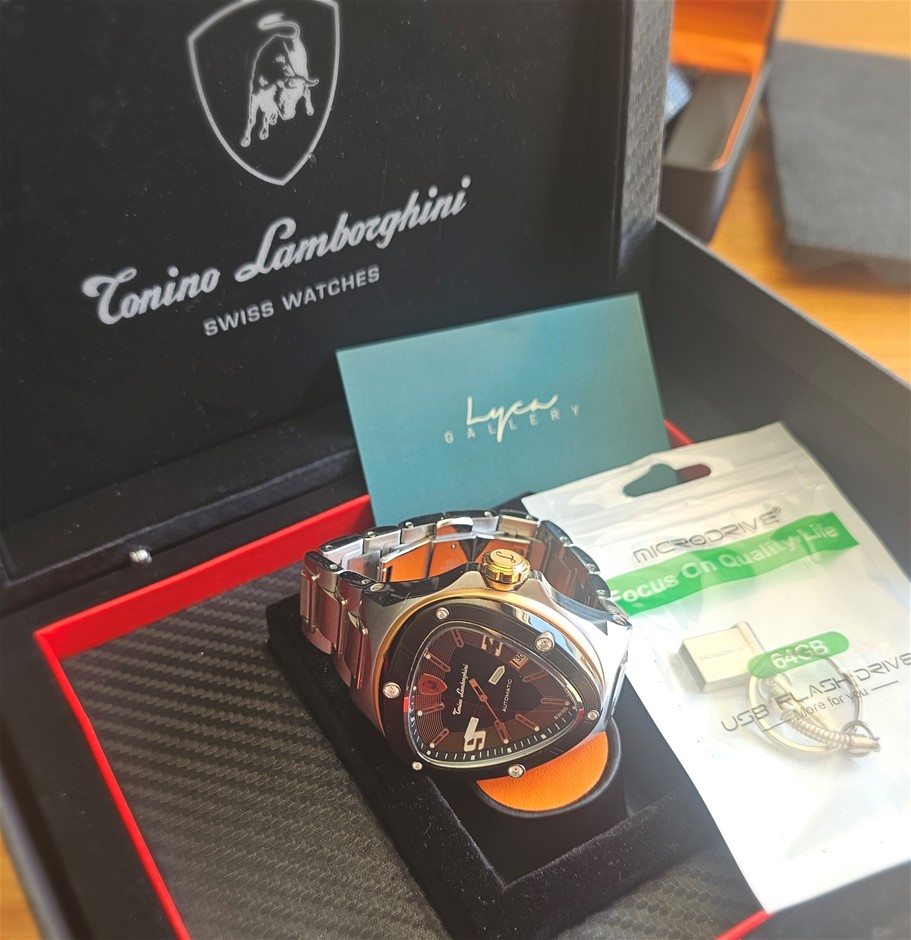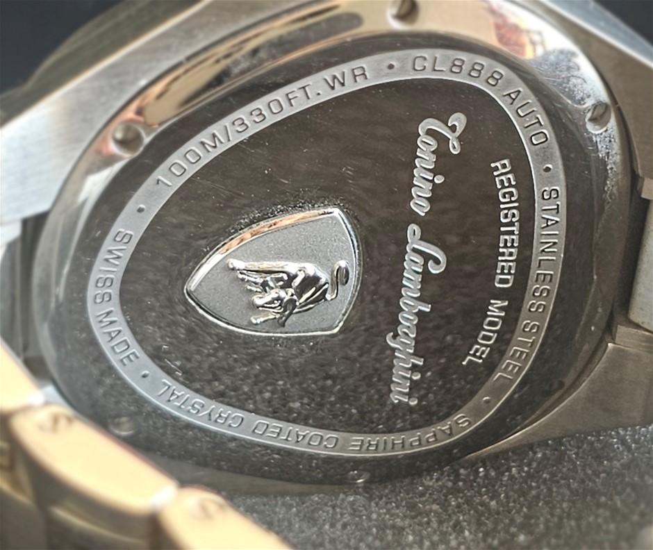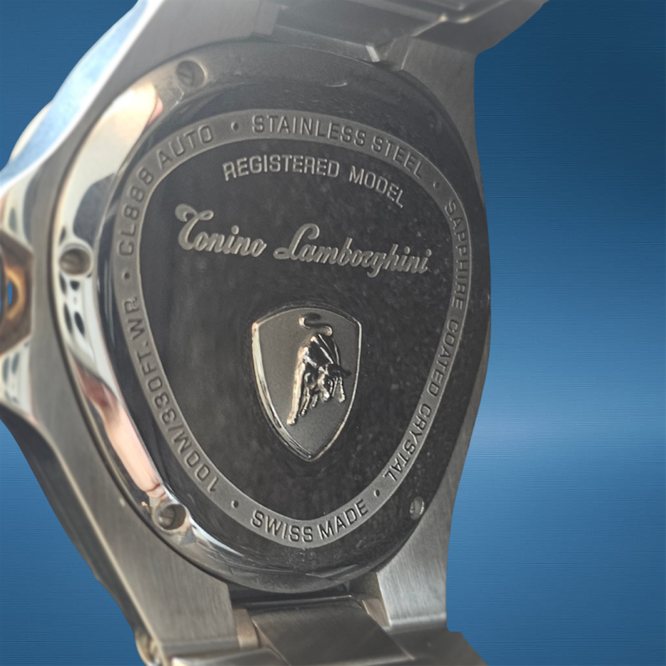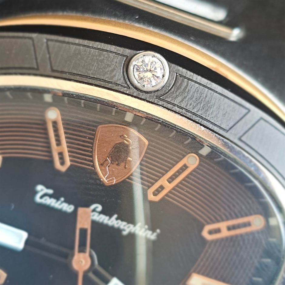 TONINO LAMBORGHINI ROSE GOLD CL888 44MM STAINLESS STEEL CL888 AUTOMATIC BLACK DIAL WXO & COA