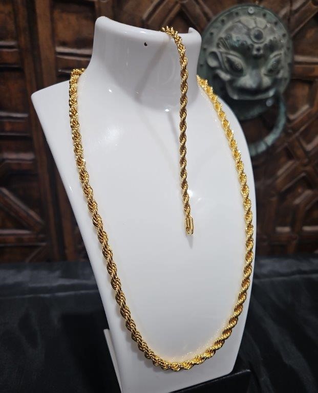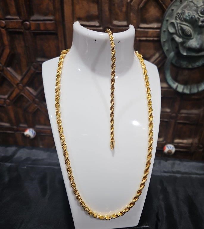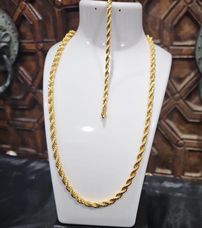 Set 22KGold Filled/Italy Stamped Yellow Rope Chain & Bracelet-50CM-5MM