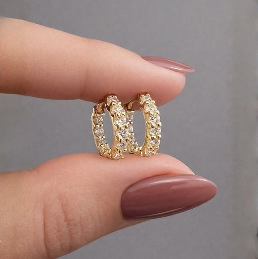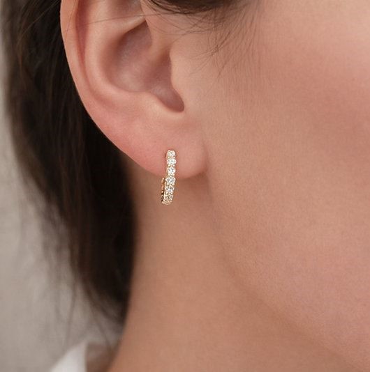 0.6ctw Diamond Huggie Earrings 14K Gold on Solid Sterling Silver