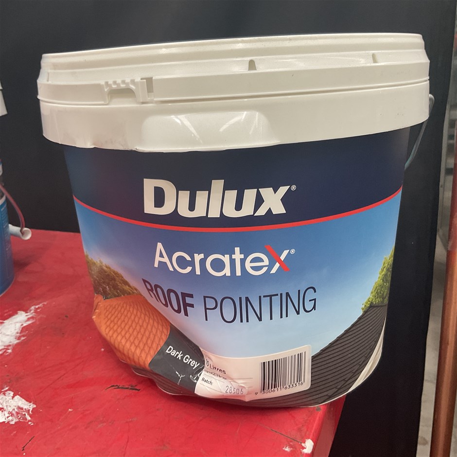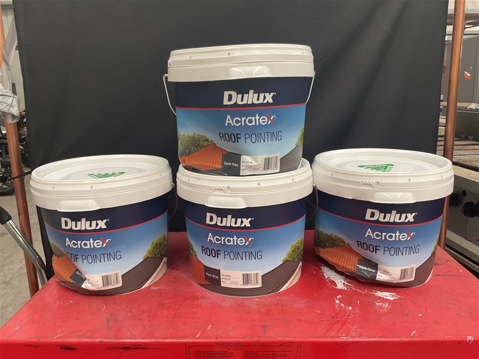 • 4 x Assorted 10 Litre Tubs of Dulux Acratex Roof Pointing Paint. Colour dark grey.