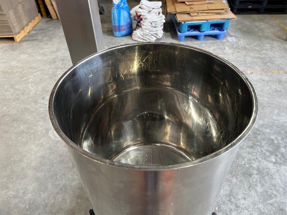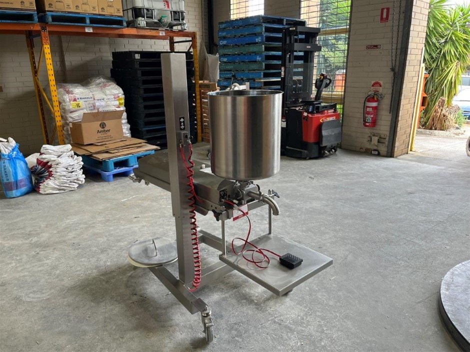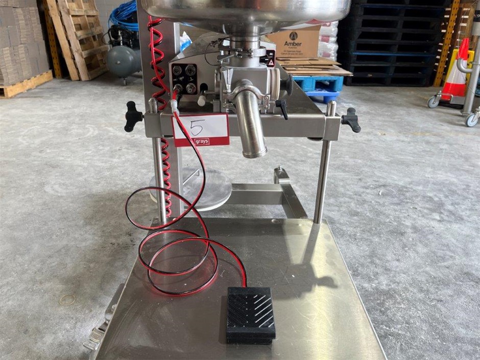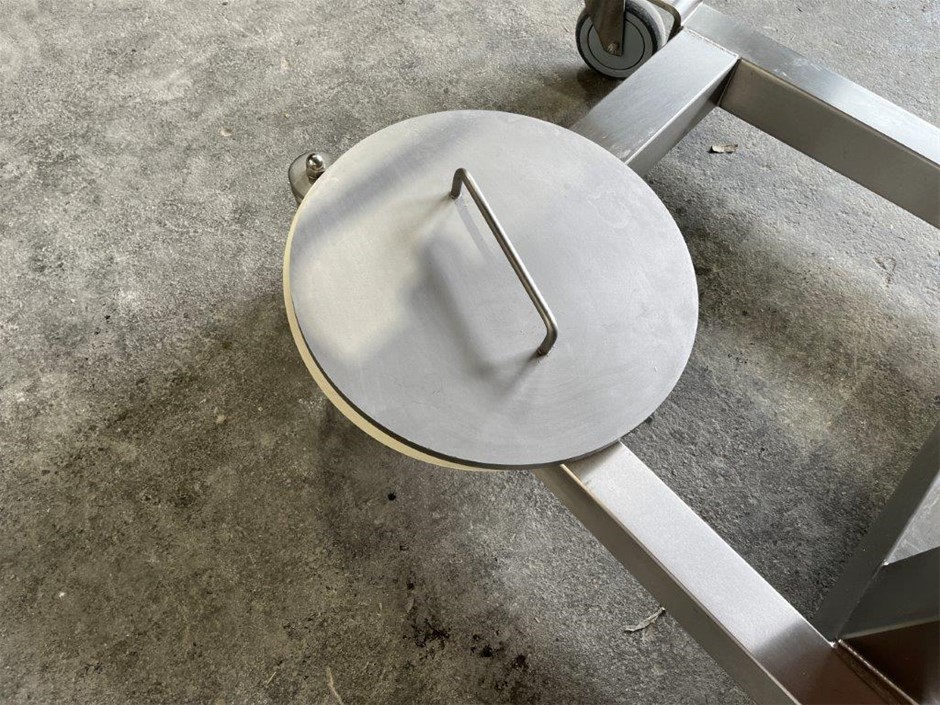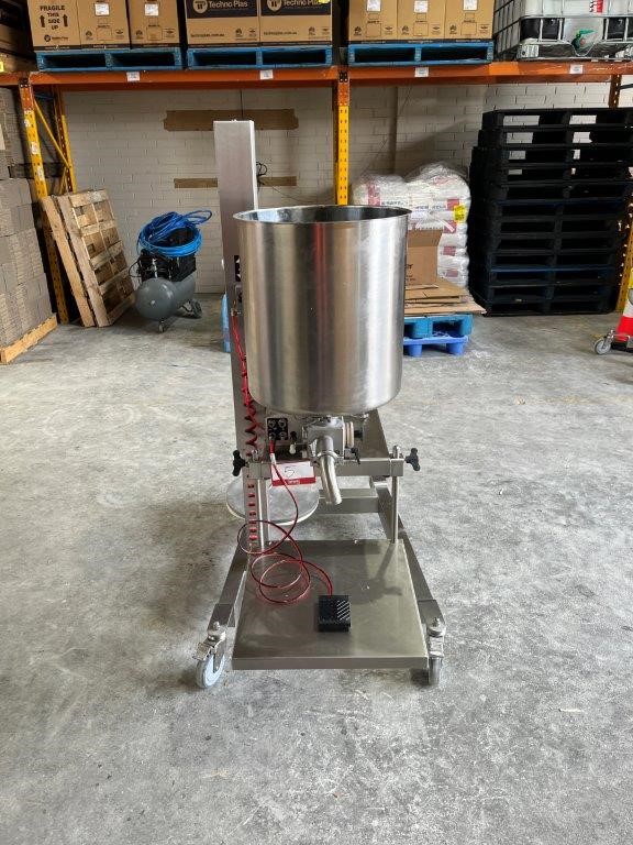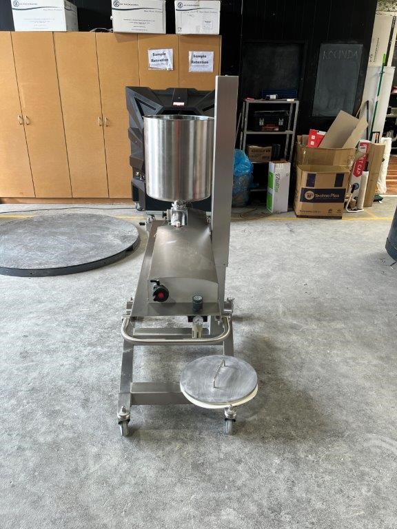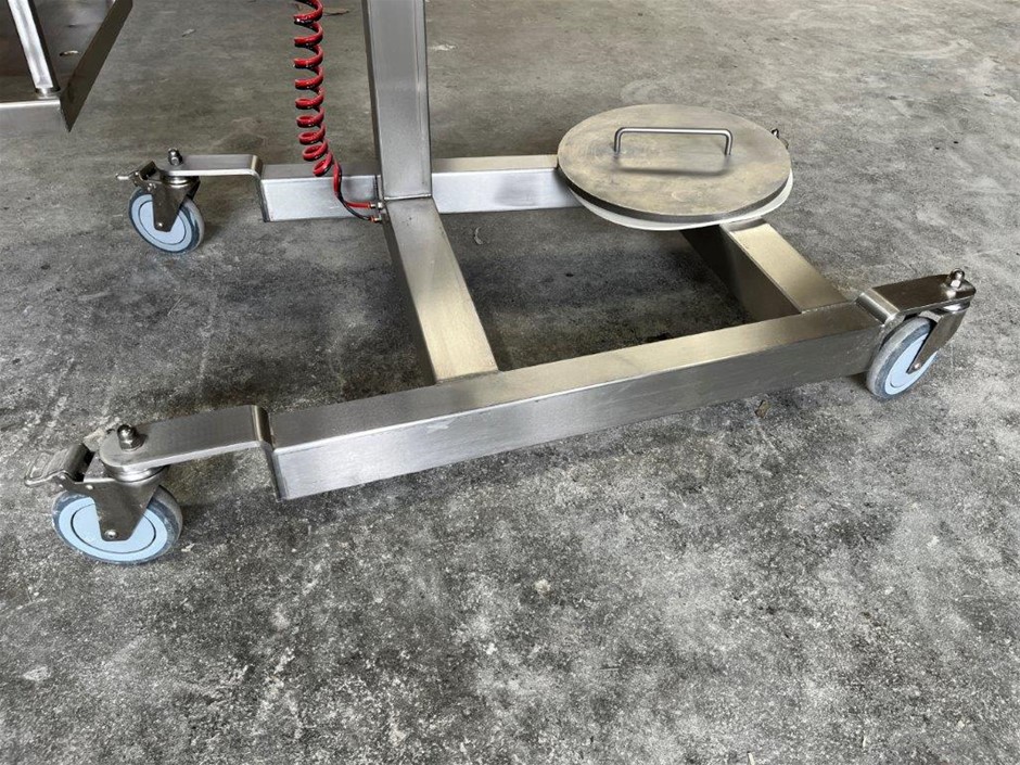 • Features: Stainless steel, Mounted on a mobile frame pneumatically adjustable in height for the most convenient operation, Hopper can be easily filled and cleaned in the lowest position, A removable table can be adjusted in height depending on the production needs