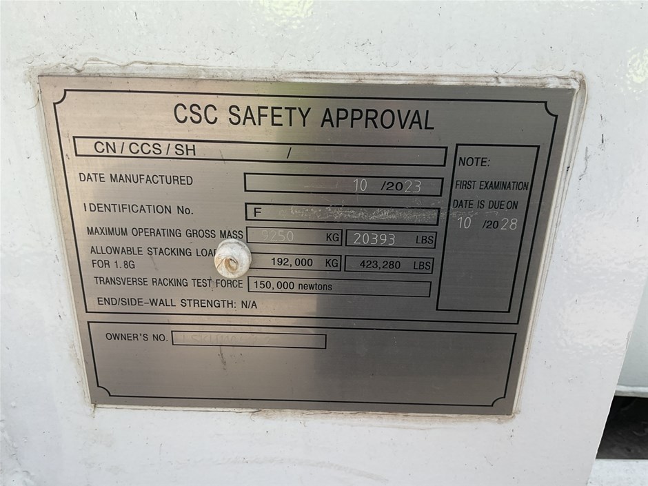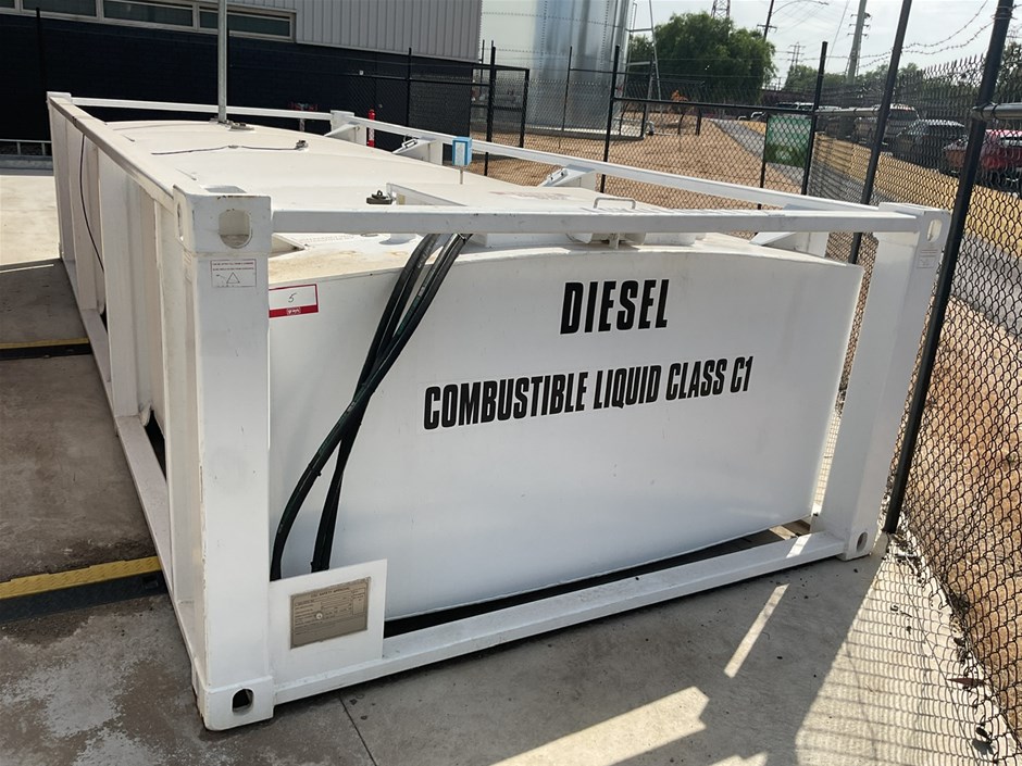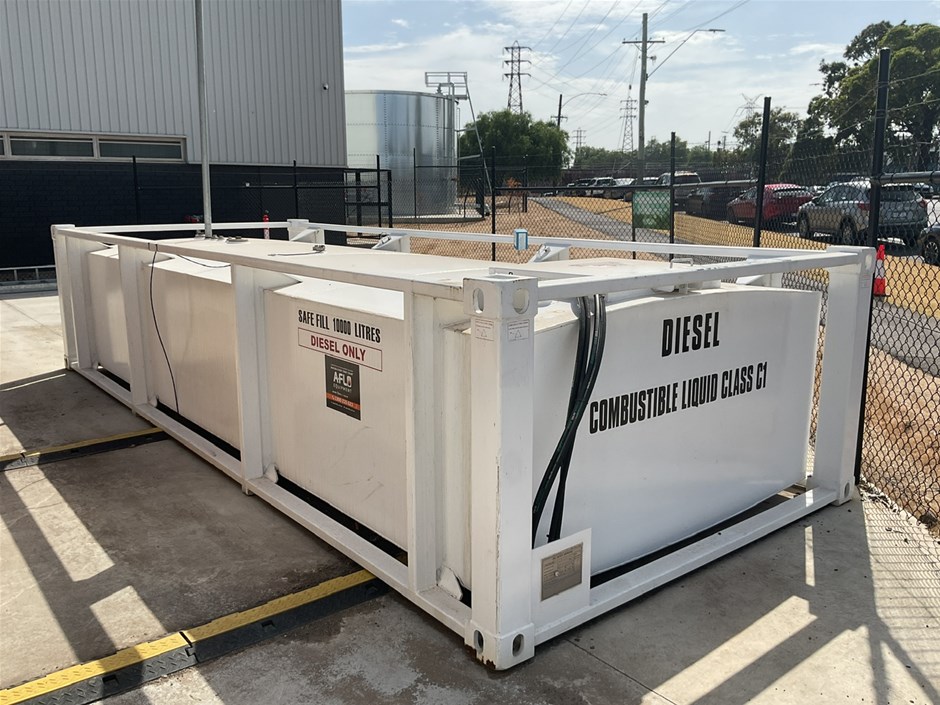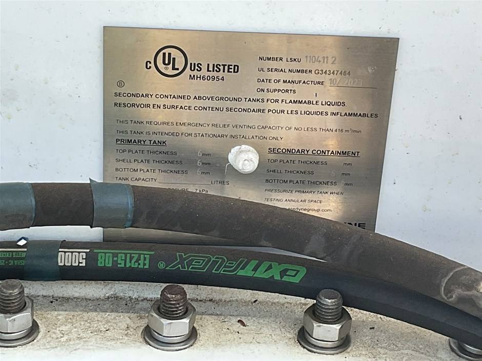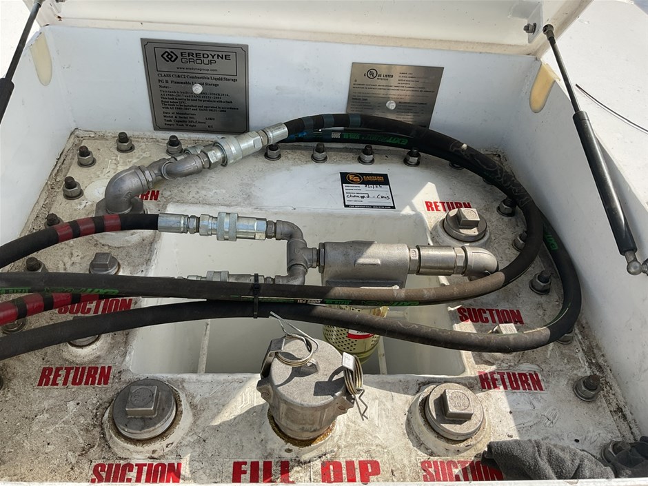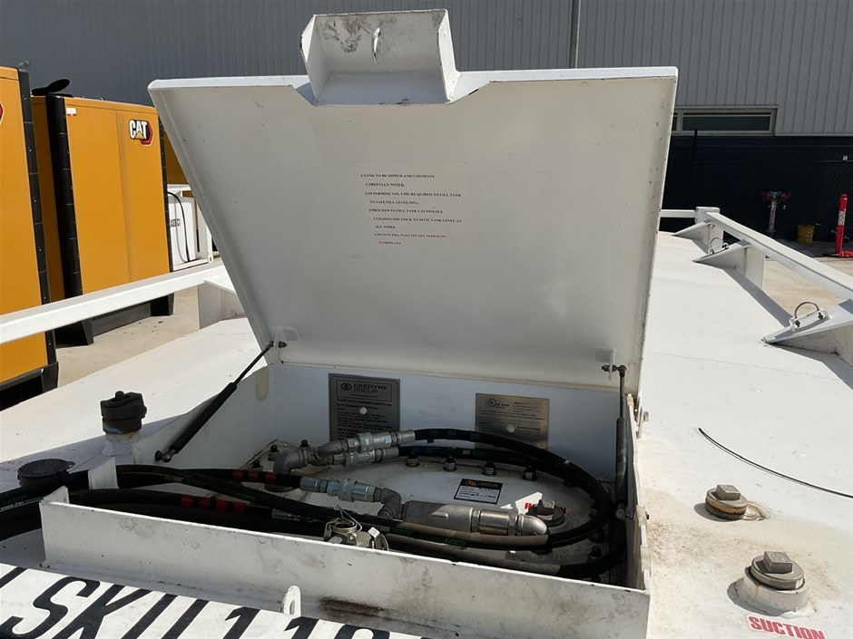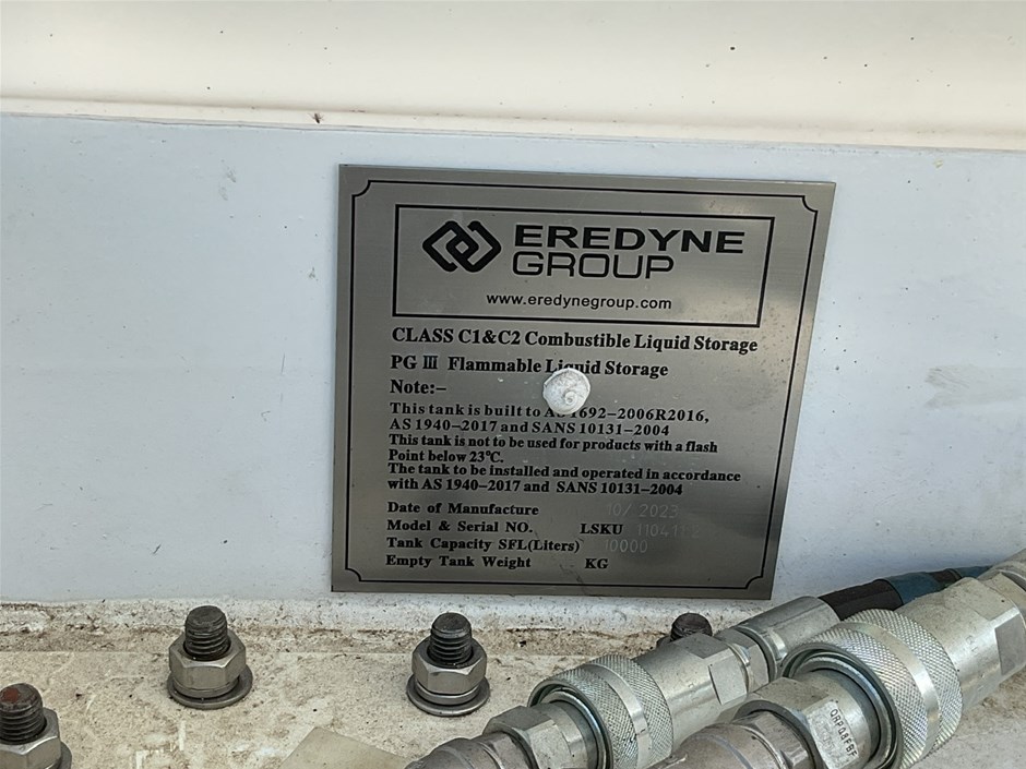 • C15 Integral Fuel Tank, and Tank base. 10,000 litre capacity, direct reading fuel level gauge. Date Manu 10/2023, Max Operating Gross Mass 9250.