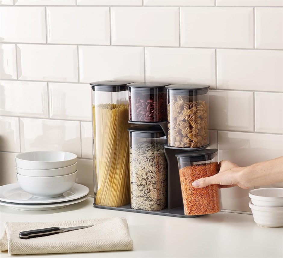 JOSEPH JOSEPH Podium Dry Food Storage Container Set with Stand, 5-piece, Gray. (Code: B078T1TW6V) (333403-5)