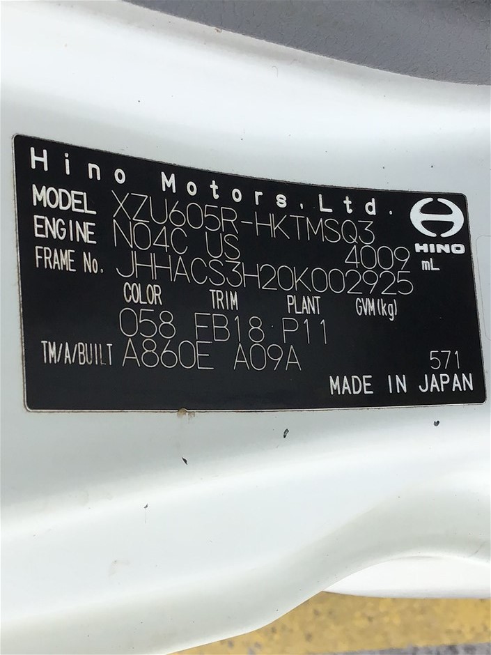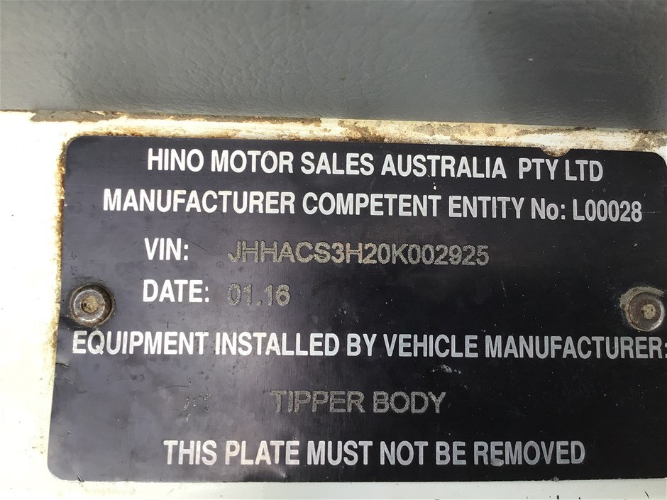 2016 Hino 616 4 x 2 Tipper Truck 2T