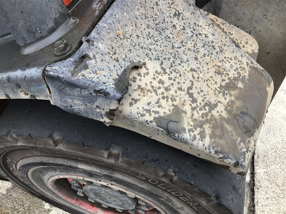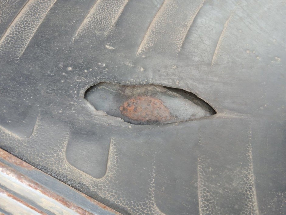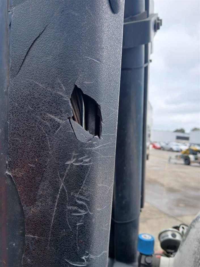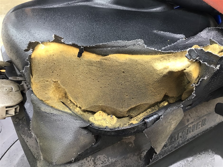 • Damage : Overall, general wear and tear. Dents, rust, scrapes, scuff marks and scratches. Right mud guard cracked. Right side behind seat, panel is cracked. Tyres worn. Right rear tyre has a significant slash. Rear cracked. Cab floor has significant rip in it. Seat has significant rips