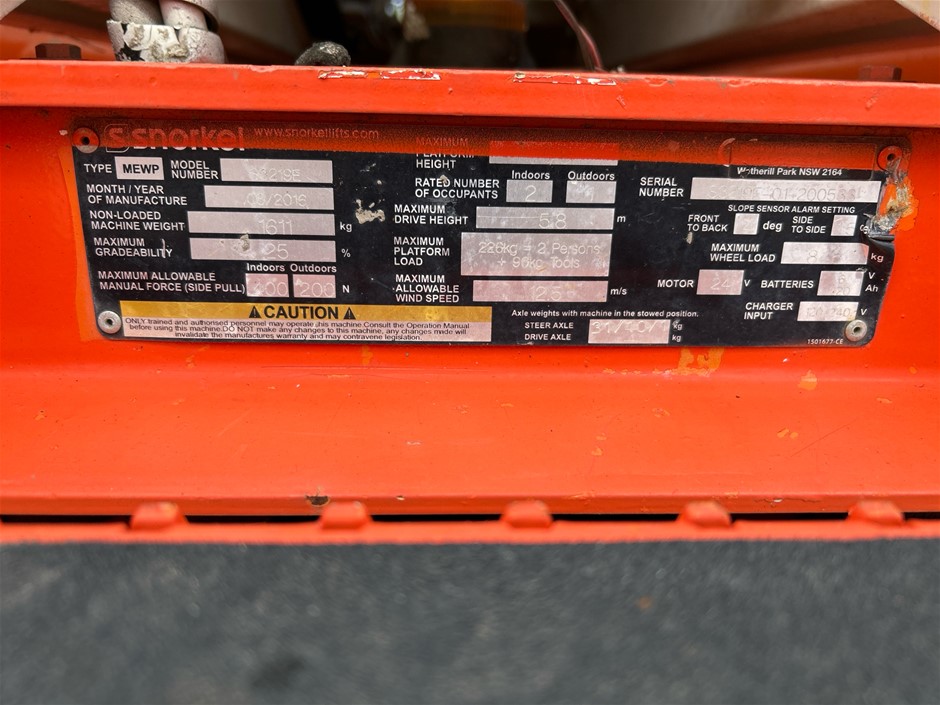 2016 Snorkel S3219E Scissor Lift - 19ft (5.7m) - Electric - Arndell Park