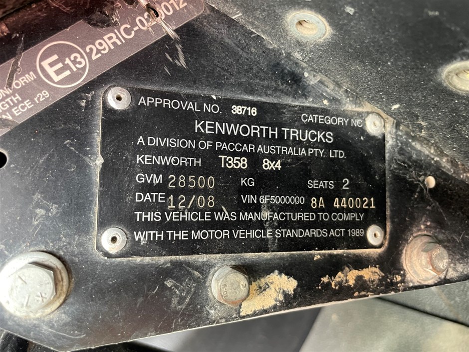 2008 Kenworth T356 8 x 4 Cab Chassis Truck