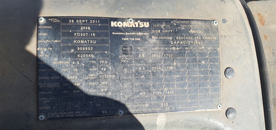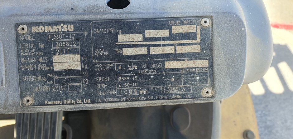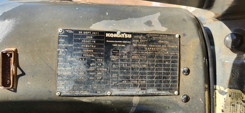 2011 Komatsu FD30T-16 Forklift - 3.0t - 3.0m - Diesel