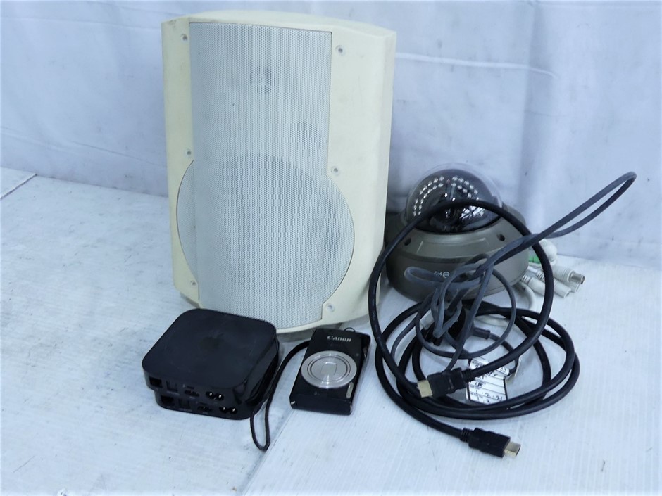 Box of Assorted IT Accessories (Camera, Apple TV & Speaker)