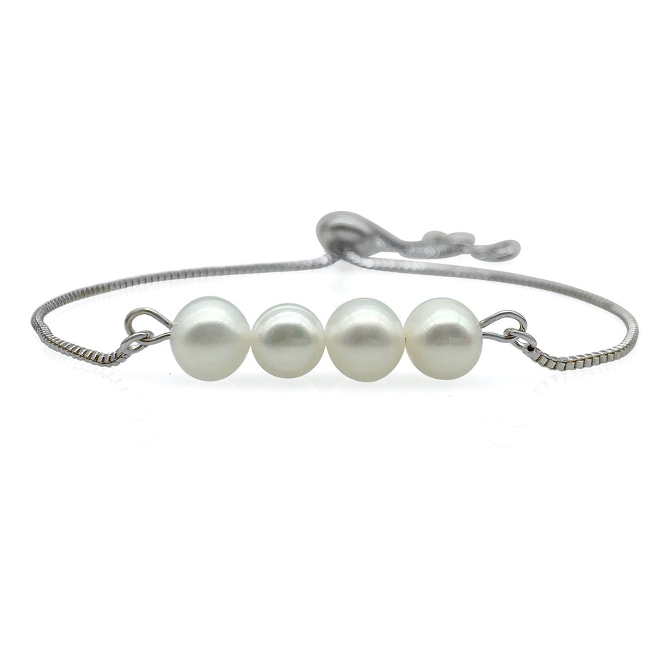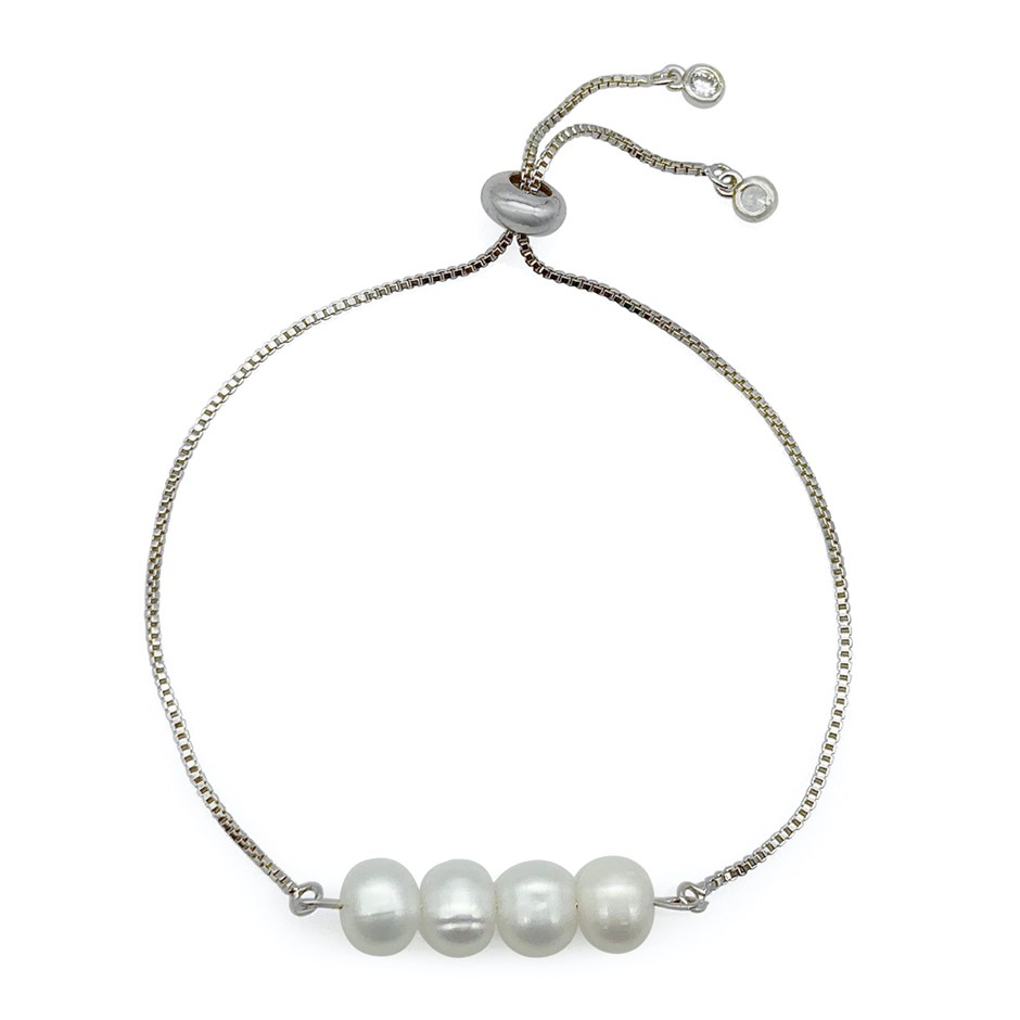 Freshwater Pearls Real Platinum Plated Chain with Adjustable Slider Bracelet.