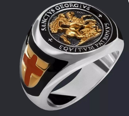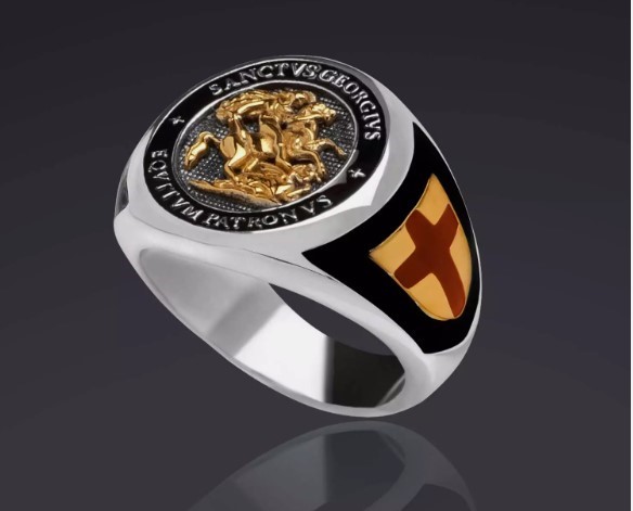925 Silver Saint George Ring St George Signet Ring Templar Eqvitvm Patronvs Silver Ring 22K Yellow Gold-Plated.