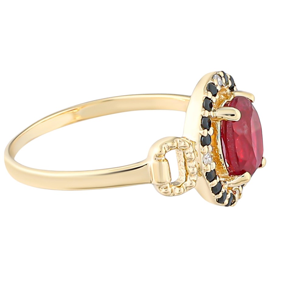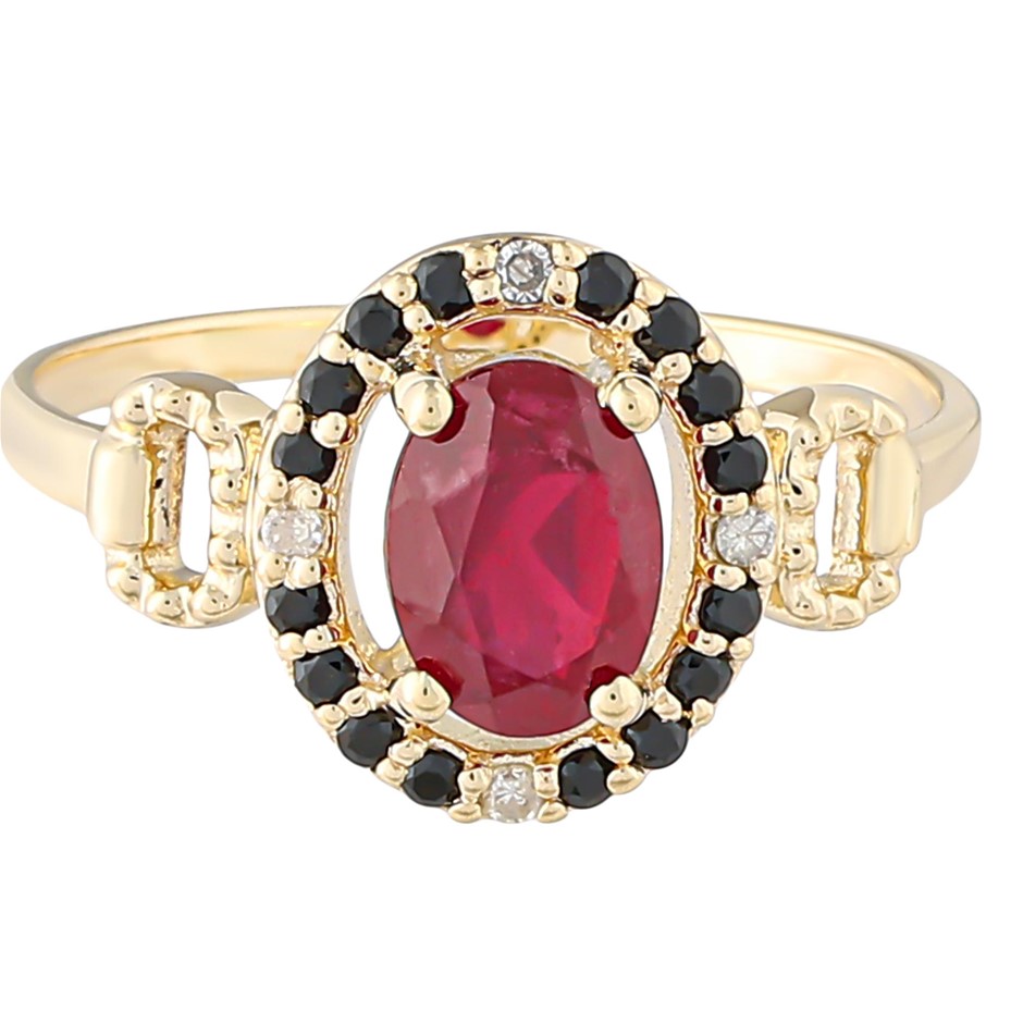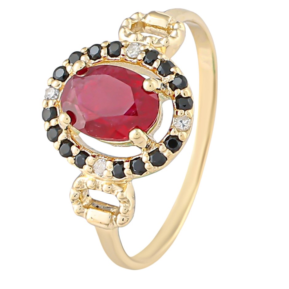 Yellow Gold Natural Ruby / Natural Black Spinel & Diamond Ring