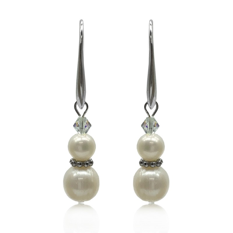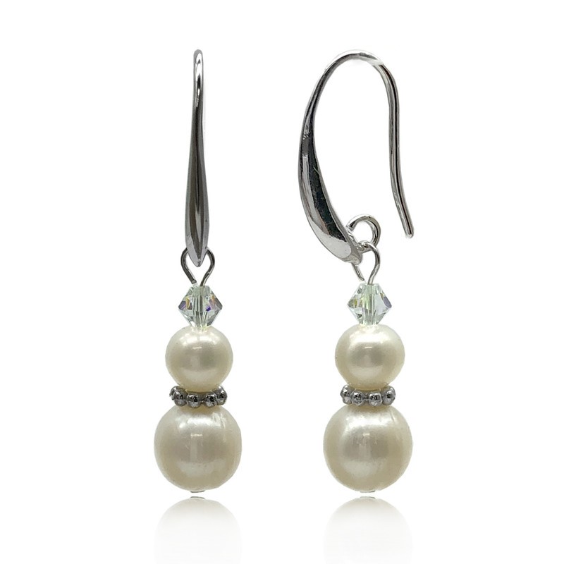 5-8mm Freshwater Pearl Adorned with Swarovski® Crystal & Real Platinum Plated Drop Earrings.
