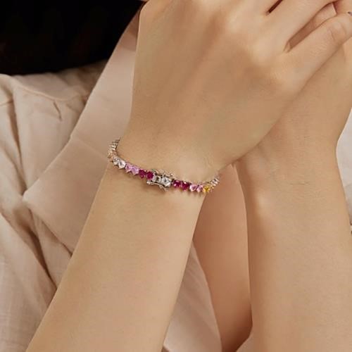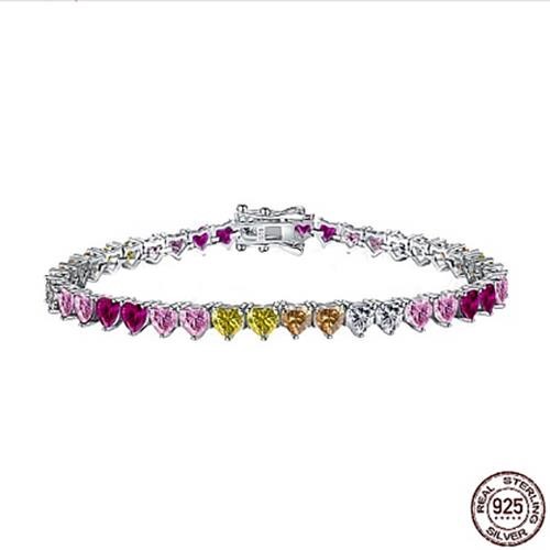 925 Sterling Silver Link Heart Tennis Bracelet with Simulated Diamonds