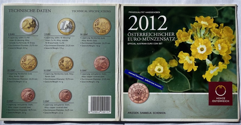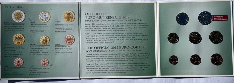 Austria: 2012 Official Euro-Coin Set Of 8 Coins (Bu)