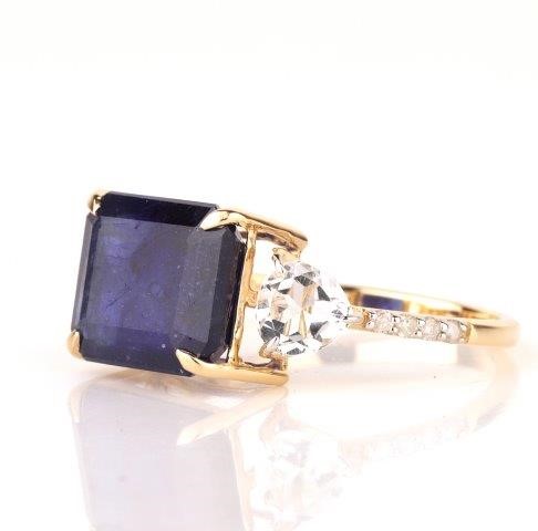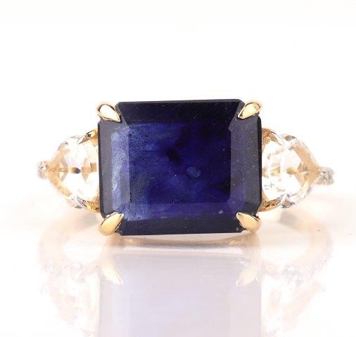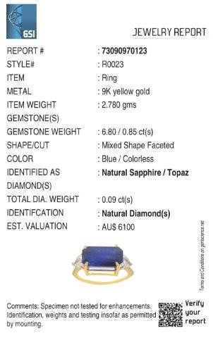 Yellow Gold Natural Blue Sapphire & Diamond Ring with Valuation