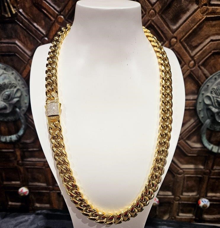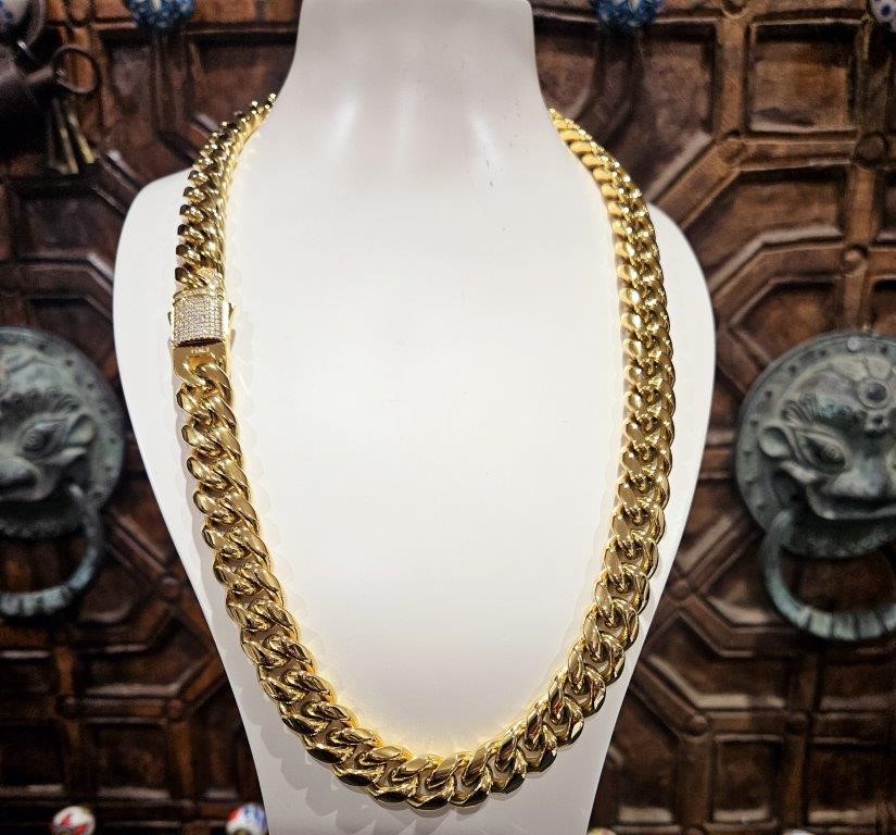 • 18K Triple Yellow Gold Plated Cuban Chain Necklace