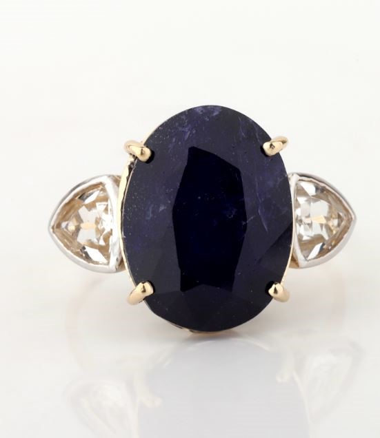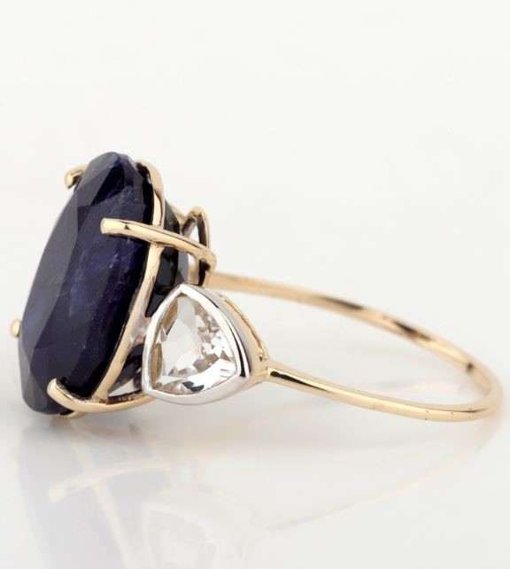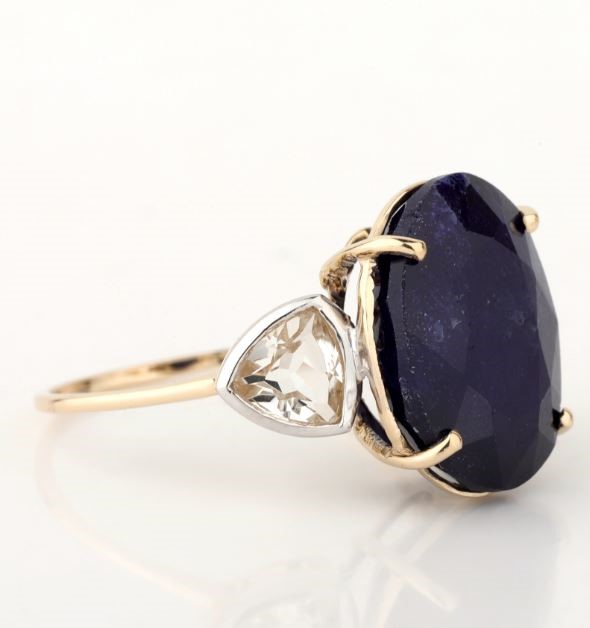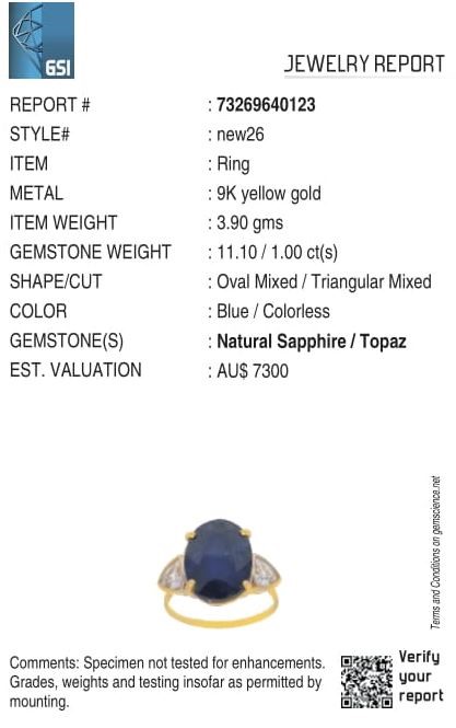 Yellow Gold Natural Blue Sapphire / Natural White Topaz Ring with Valuation