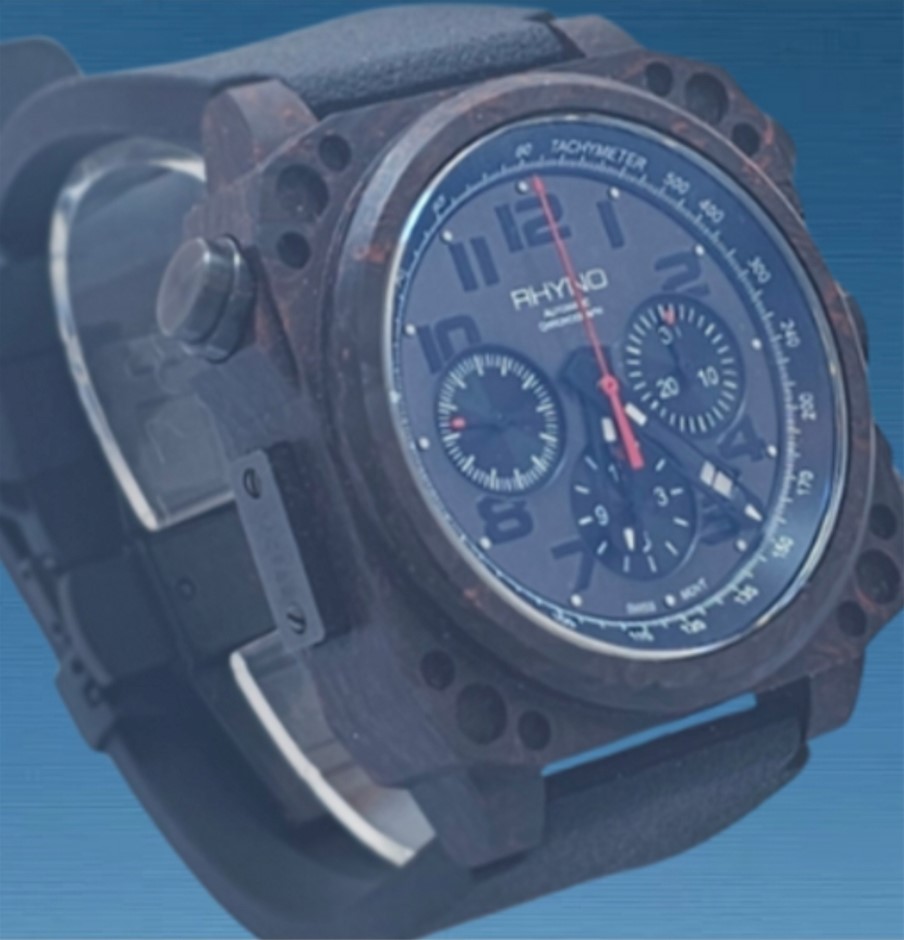 The Rhyno Rubicon RFC-319 is a bold limited edition chronograph crafted in forged carbon, a material prized for its lightweight durability and unique marbled texture. With its aggressive design, modern proportions, and Swiss chronograph movement, this watch represents exclusivity and innovation in independent horology.