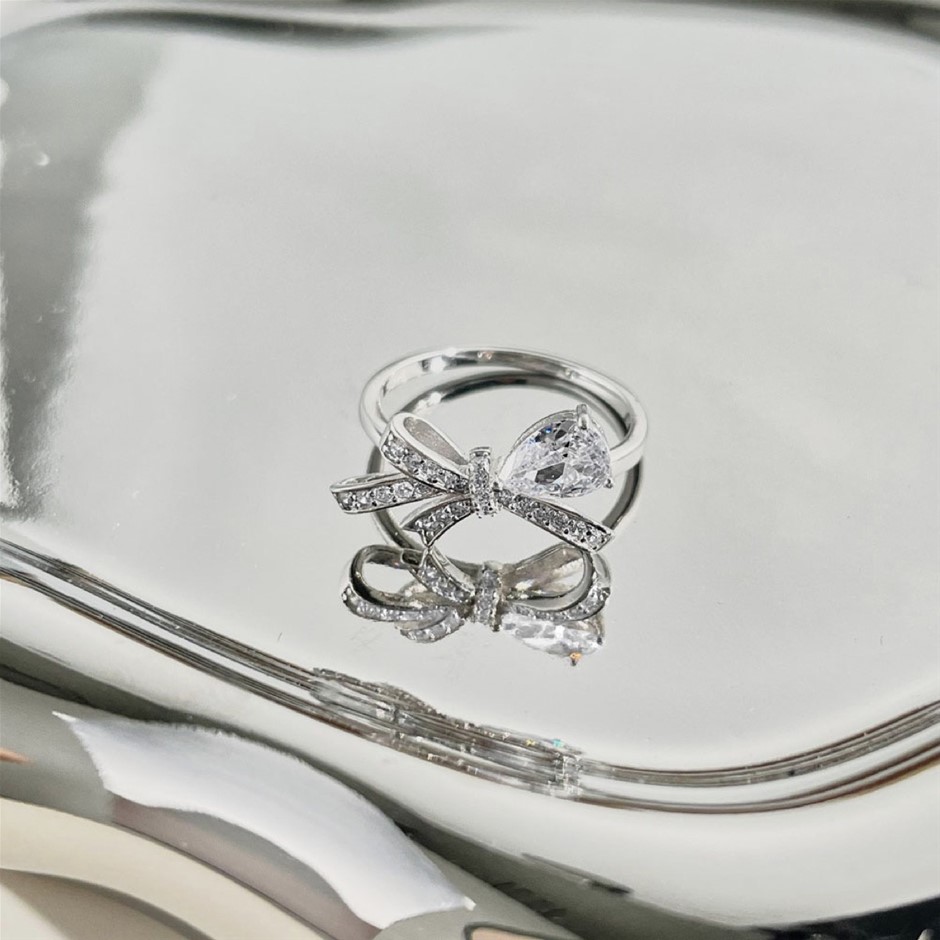 0.5ct Ribbon Style Simulated Diamond 925 Sterling Silver Ring - Size 6
