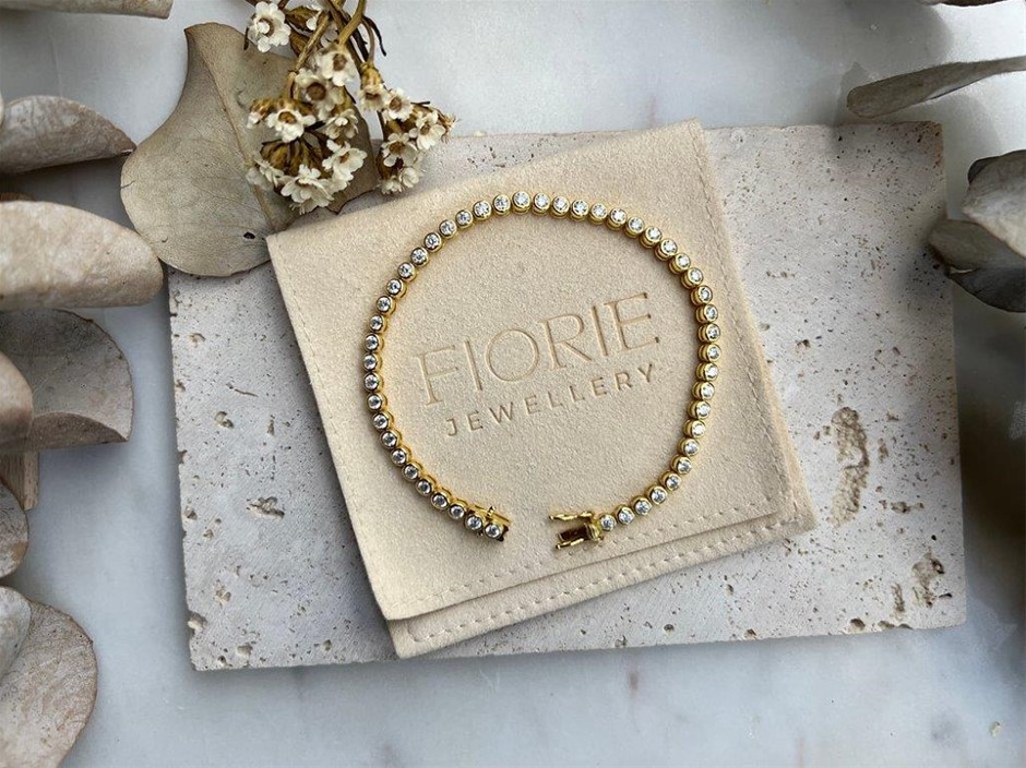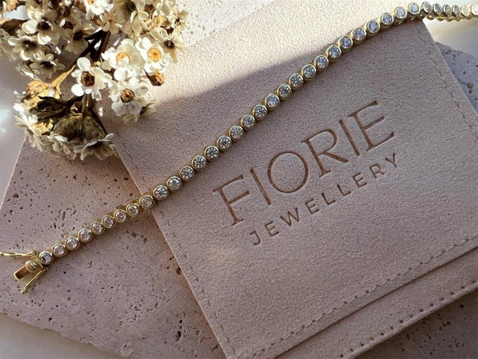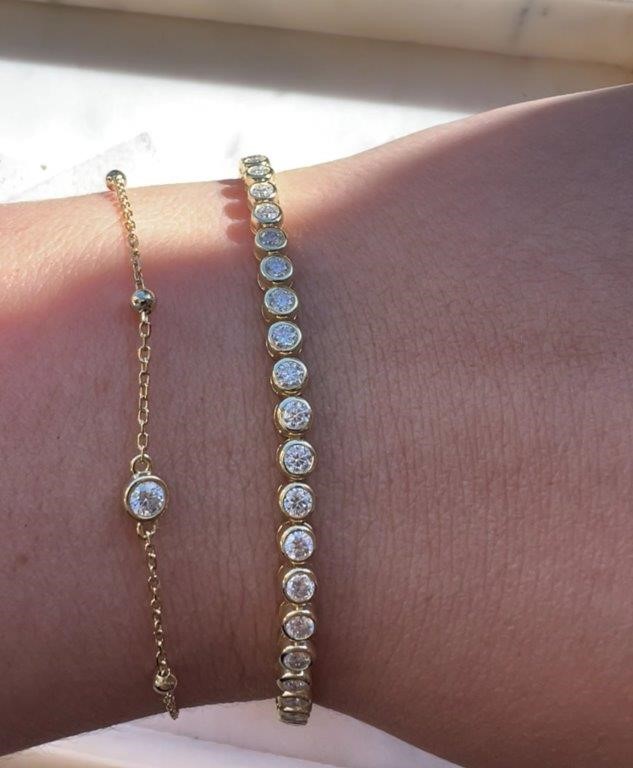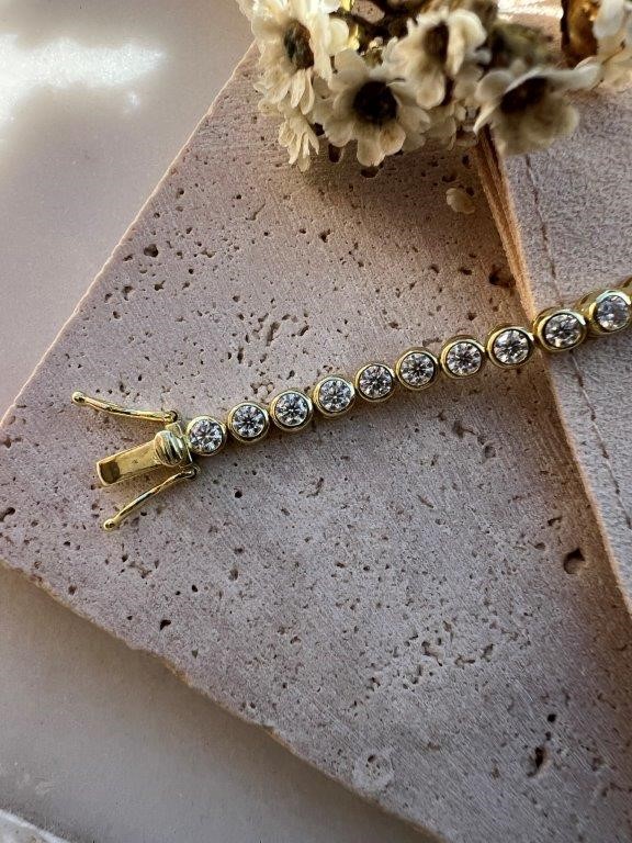 Moissanite 2.5mm Bezel Tennis Bracelet 18k Yellow Gold on Sterling Silver