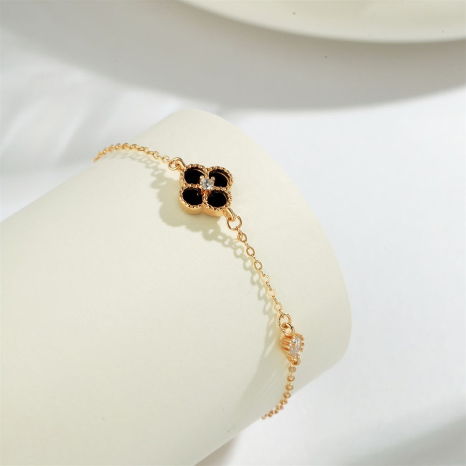 Four Leaf Clover Simulated Diamonds 925 Silver Tennis Bracelet