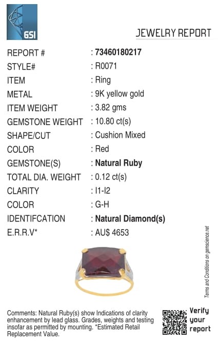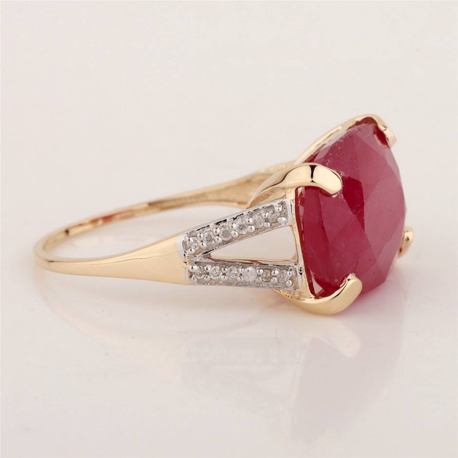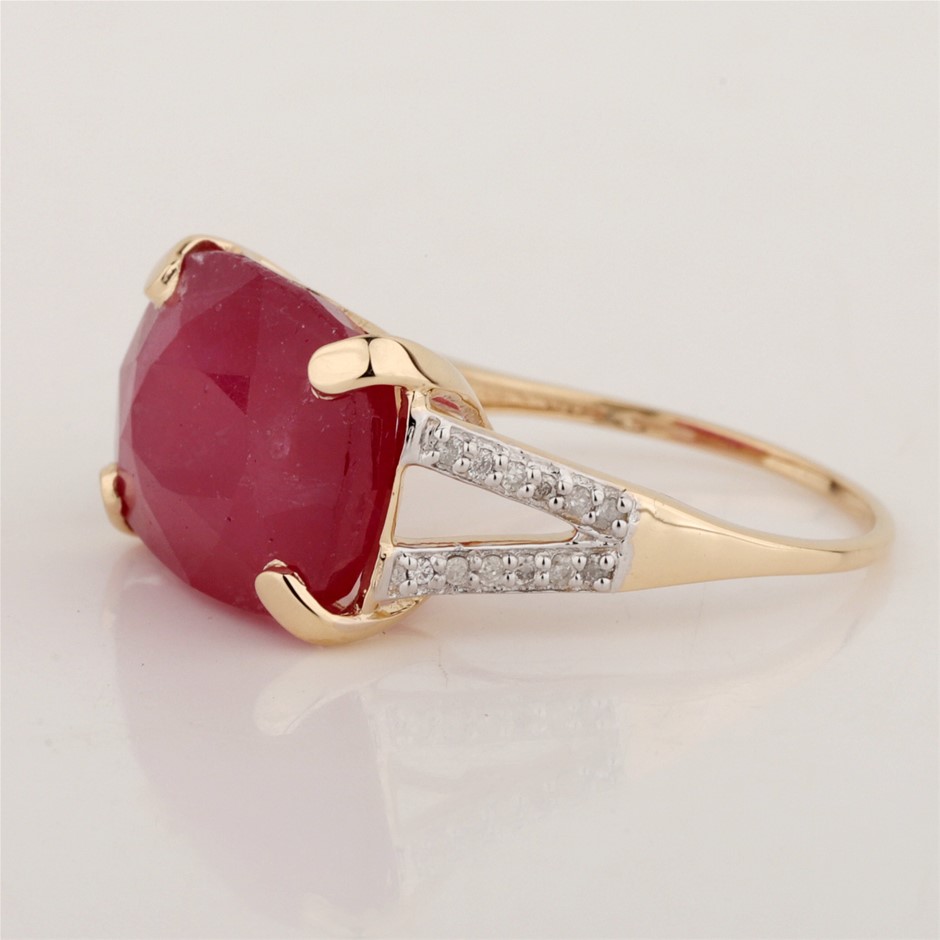 Yellow Gold Natural Ruby & Diamond Ring with Valuation