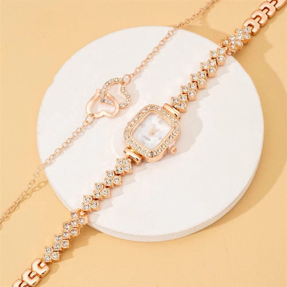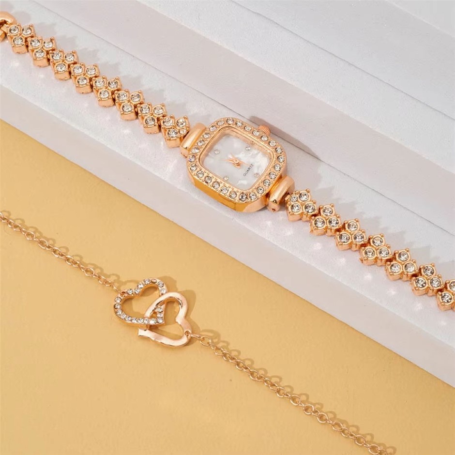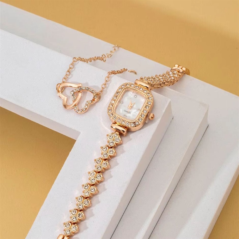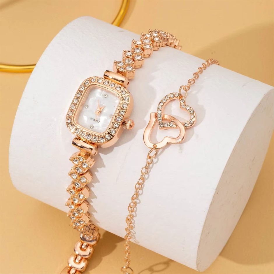 2PCS Rose Gold Watch & Heart Bracelet Set