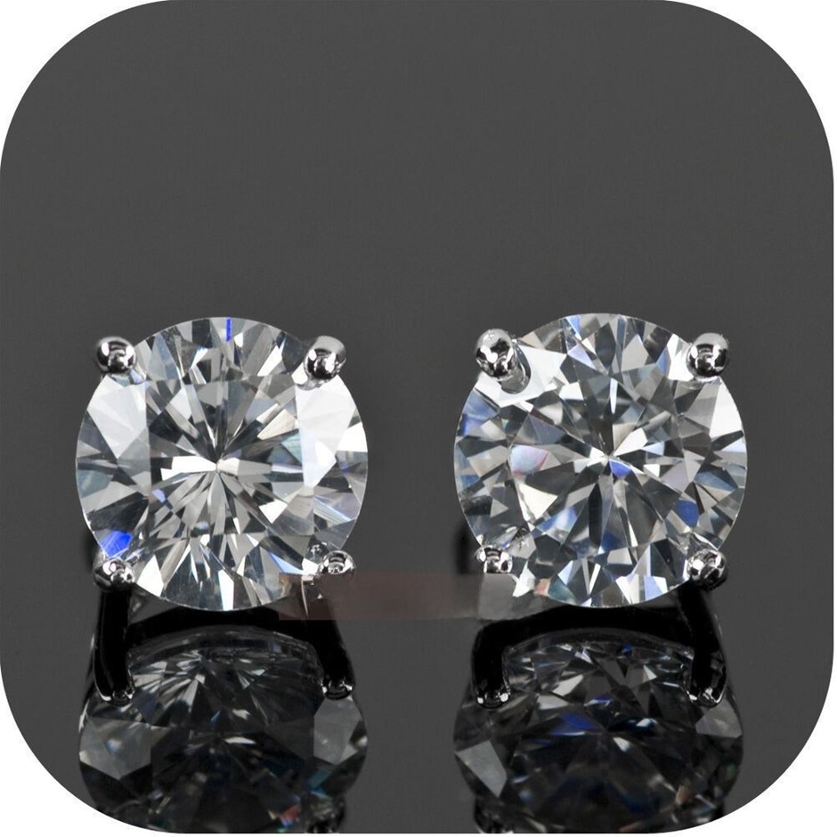 Stunning 18ct White Gold (GF) 1.3ct Swarovski Crystal Solitaire Stud Earrings