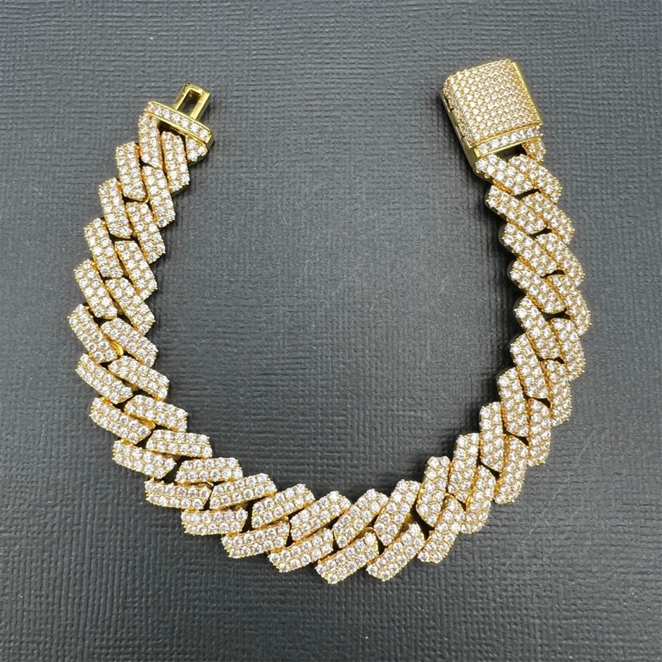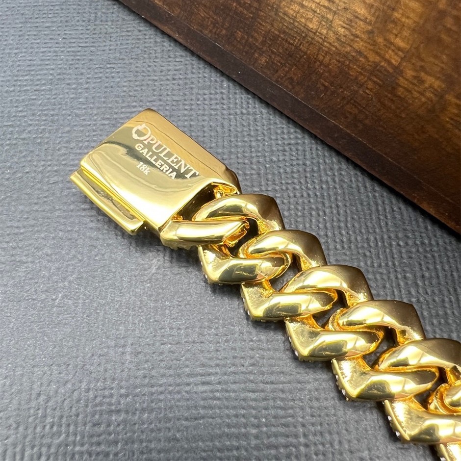 Opulent Galleria - 18K Gold-Filled Cuban Chain Bracelet with Simulated Diamonds - 17.8cm