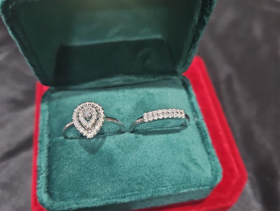2pcs GRA Moissanite white Cut-925 Sterling Silver Ring -9US