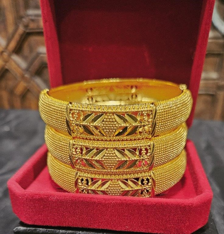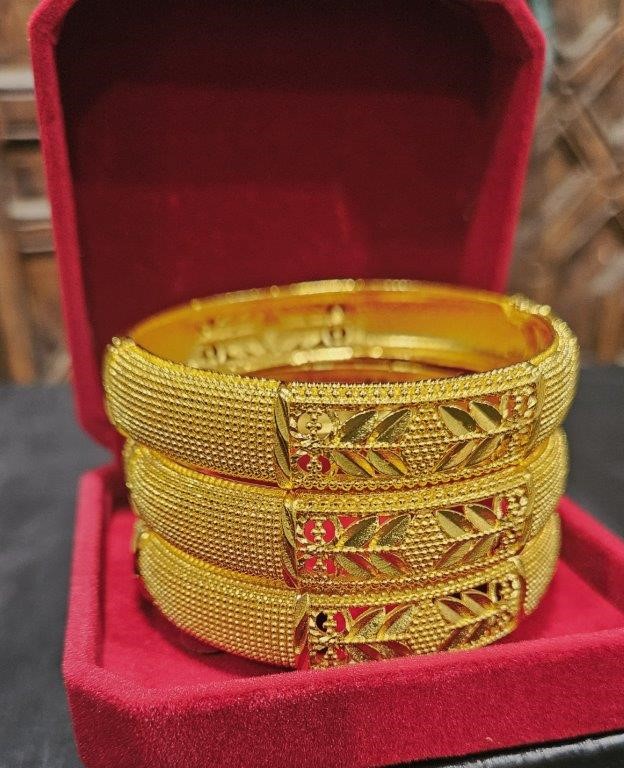 3pcs x 22K/ITALY Triple Yellow Gold Plated Bangles with stamps