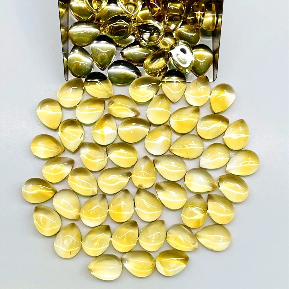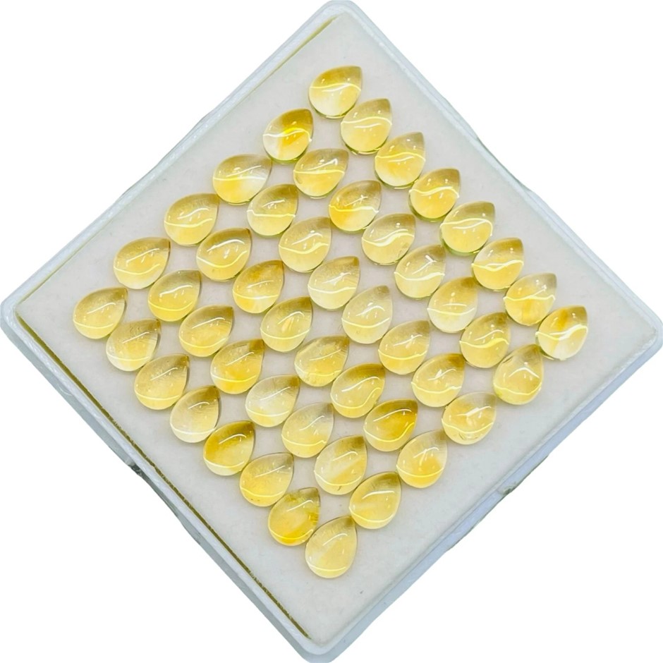 68.00ct (Approx) - 50pcs Pear Cabochon Cut Natural Sparkling Lemon Citrine Gemstones