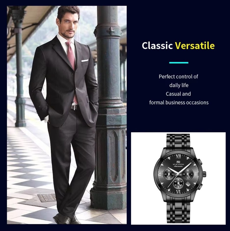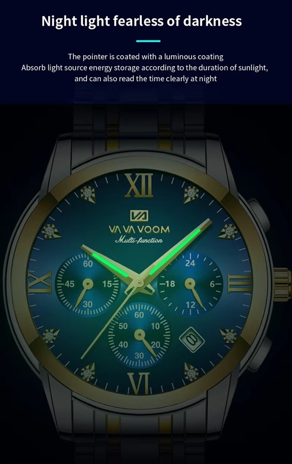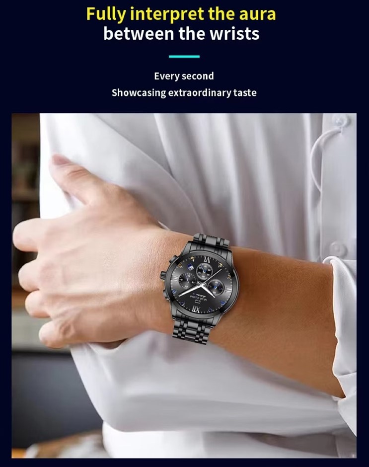 The watch has a multifunctional dial, offering 5 in 1 multifunctional innovative timing, simple and easy to understand sub dial, calendar window, stopwatch dial, 24H timing dial and luminous pointer.