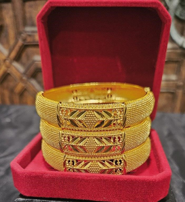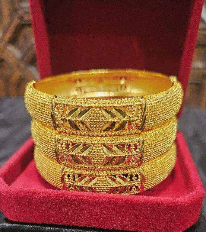 3pcs x 22K/ITALY Triple Yellow Gold Plated Bangles with Stamps
